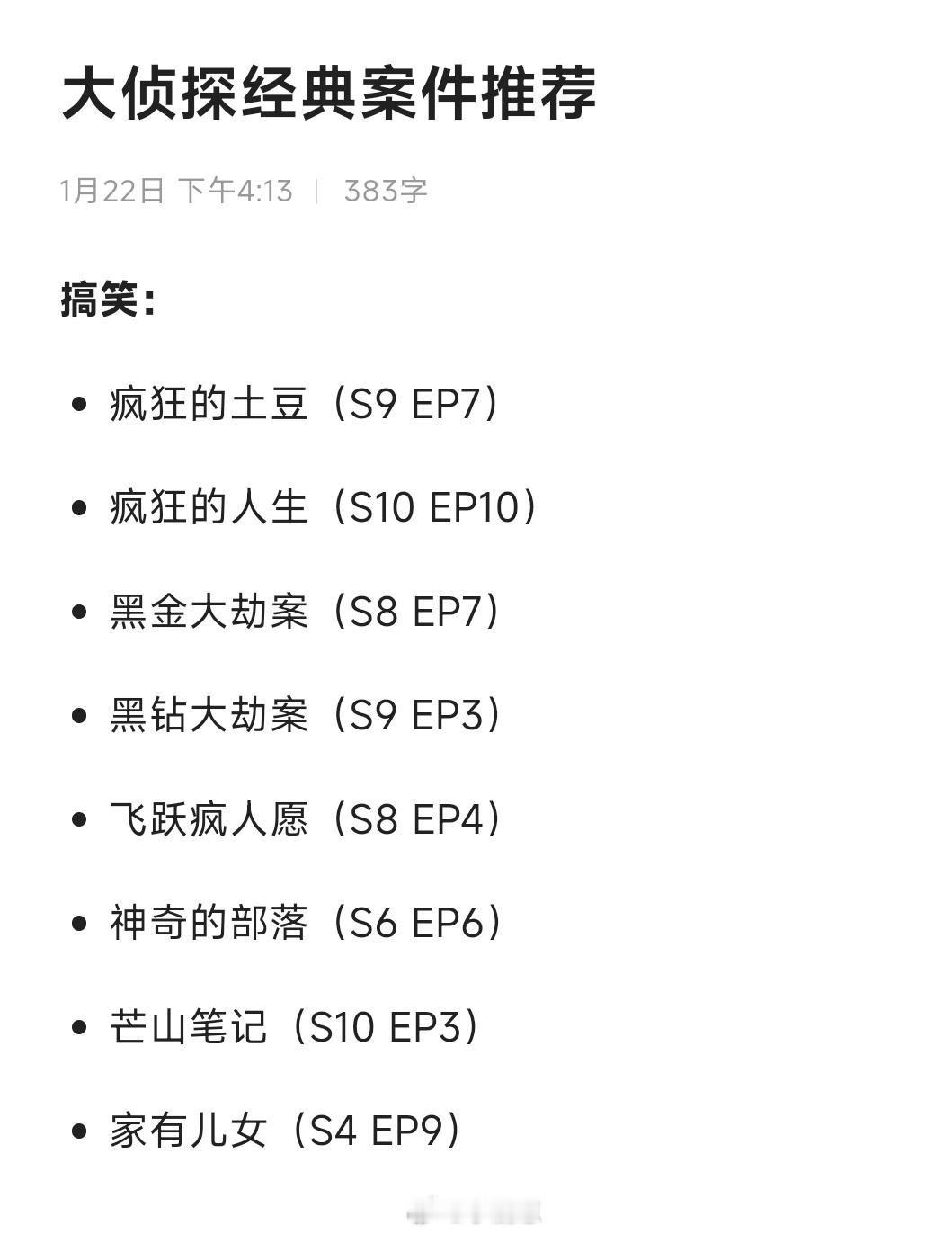 大侦探经典案件推荐在等待大侦探11到来期间,基本又重温了一遍1-10季,发现好看的案件实在太多了,很多都值得n刷的。总结了一些比较经典的案件,推荐给还没看过或者想要重刷的朋友。大侦探‖