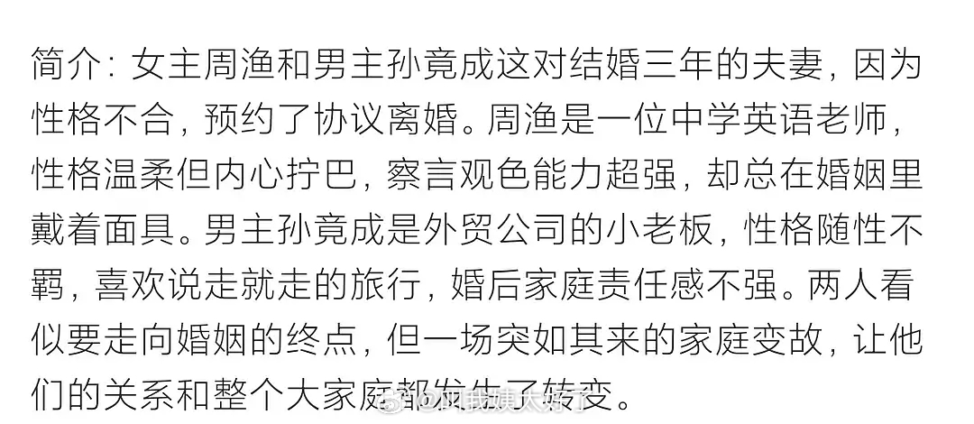 《但愿人长久》确定张晚意、沈月,男女主结婚三年闹结婚的故事。这两位都符合这个人设