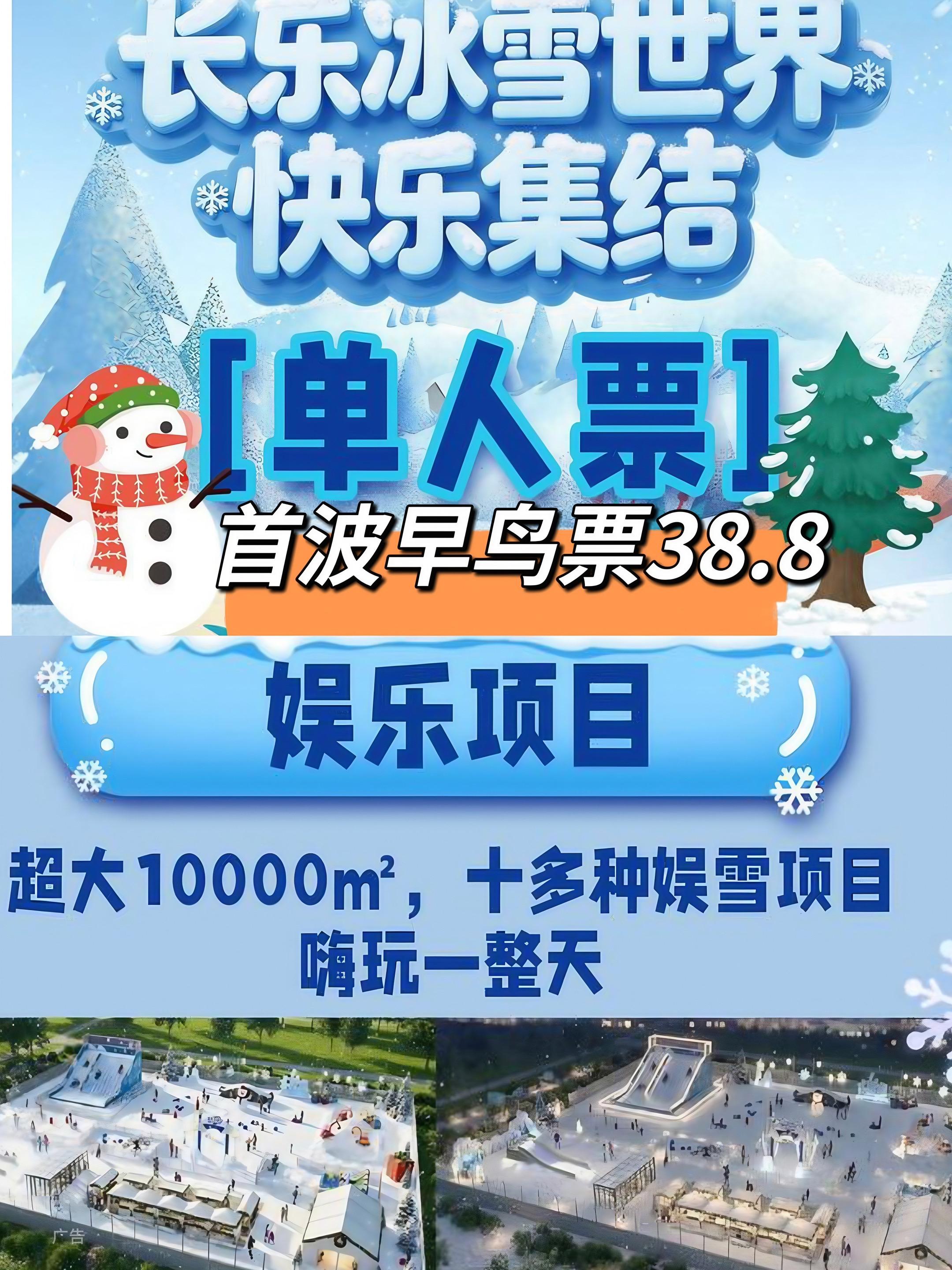 长乐冰雪世界官宣1月 31日开园,第一波早鸟票单人 38.8,双人58.8,非常划算,刷到先囤,没去可退!