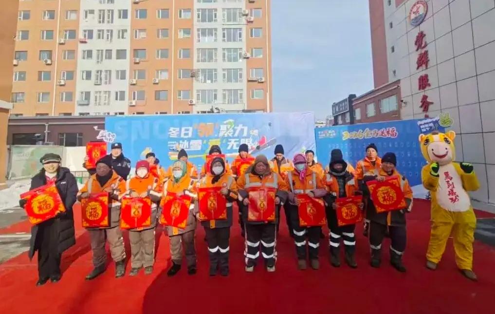 活动特别设置暖心慰问环节,社区向辛勤工作的环卫工人表达感谢,并送上新春福袋。环卫工人们手捧姜茶,品尝专门准备的食物,在寒冬中感受到社区的温暖。现场还设有新年吉祥物互动打卡点,居民纷纷合影,定格冬日温馨瞬间。