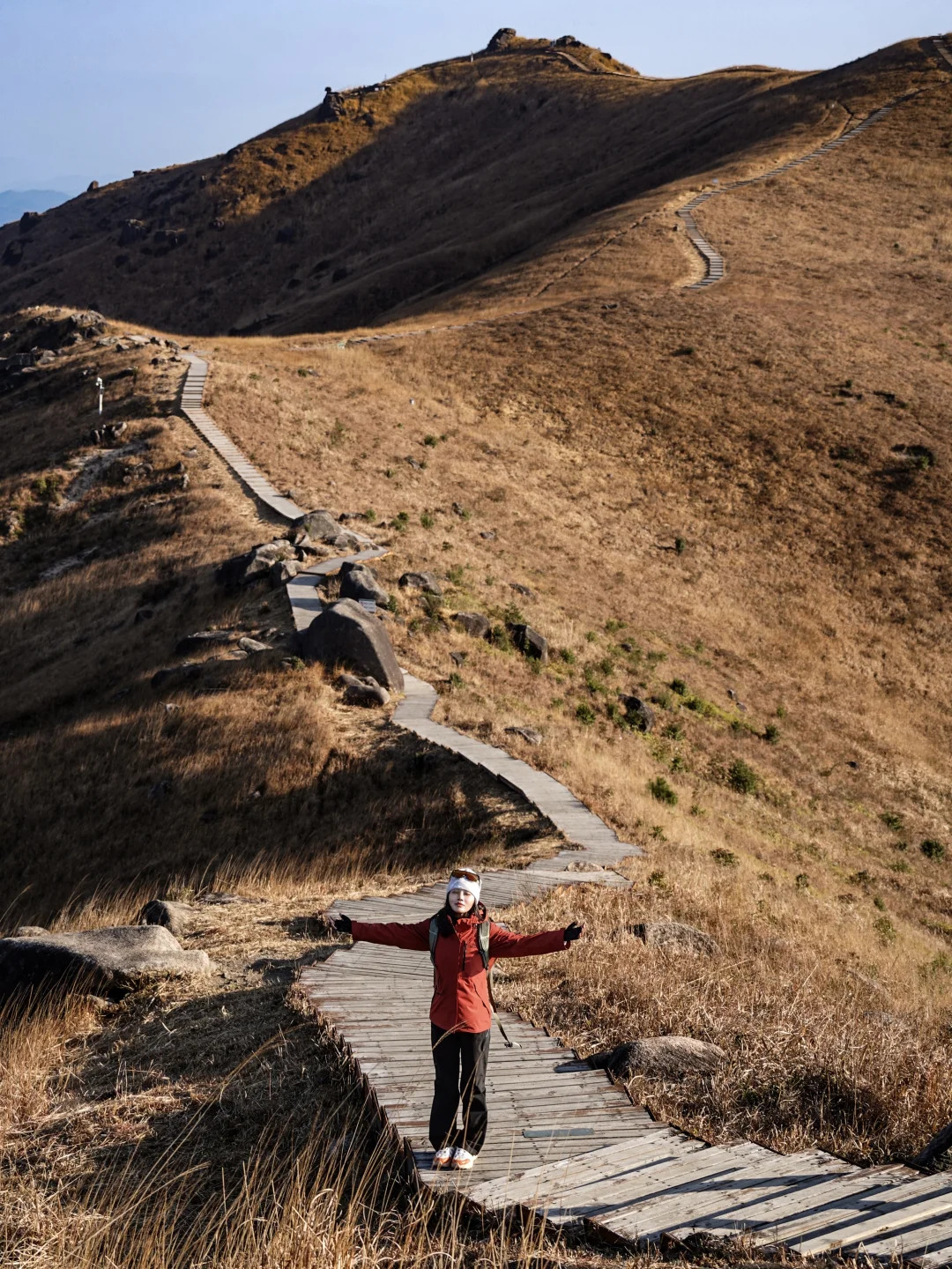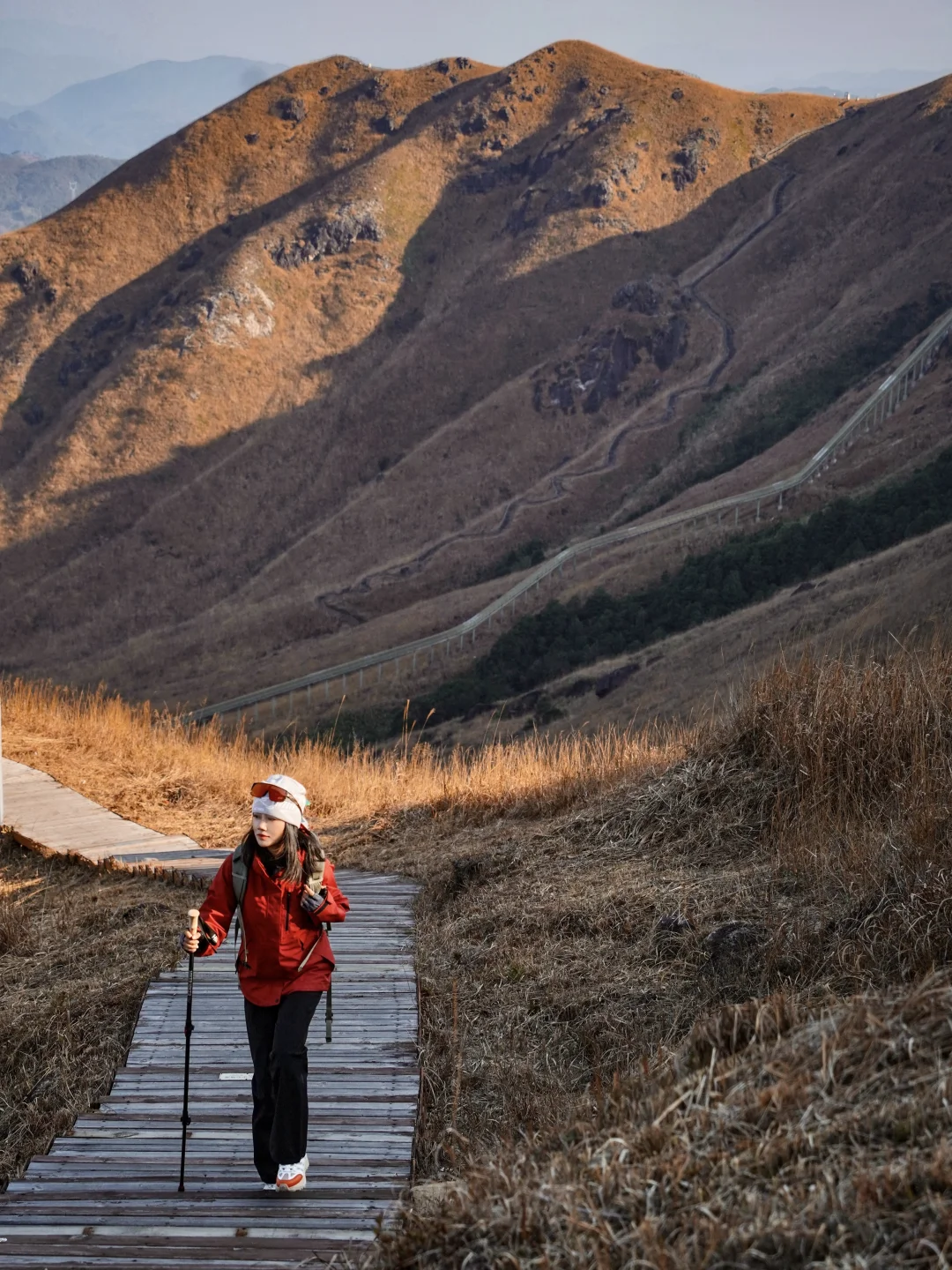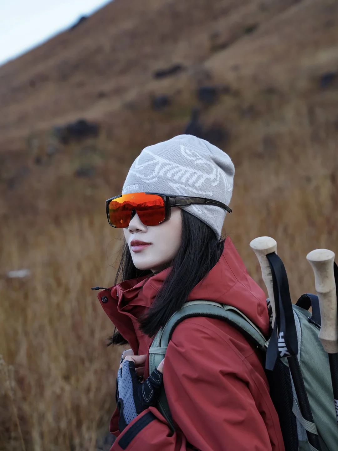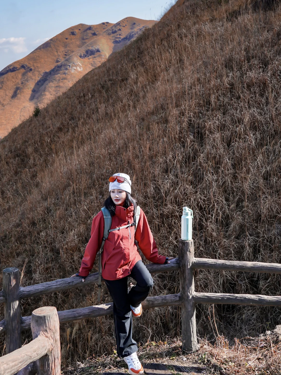 冲锋衣、防风眼镜(能挡风又能防紫外线)、徒步鞋(这次穿了防滑徒步鞋,轻松走完小环线,爬野路也不愁,抓地力还是很稳的)、背包、登山杖、干粮等