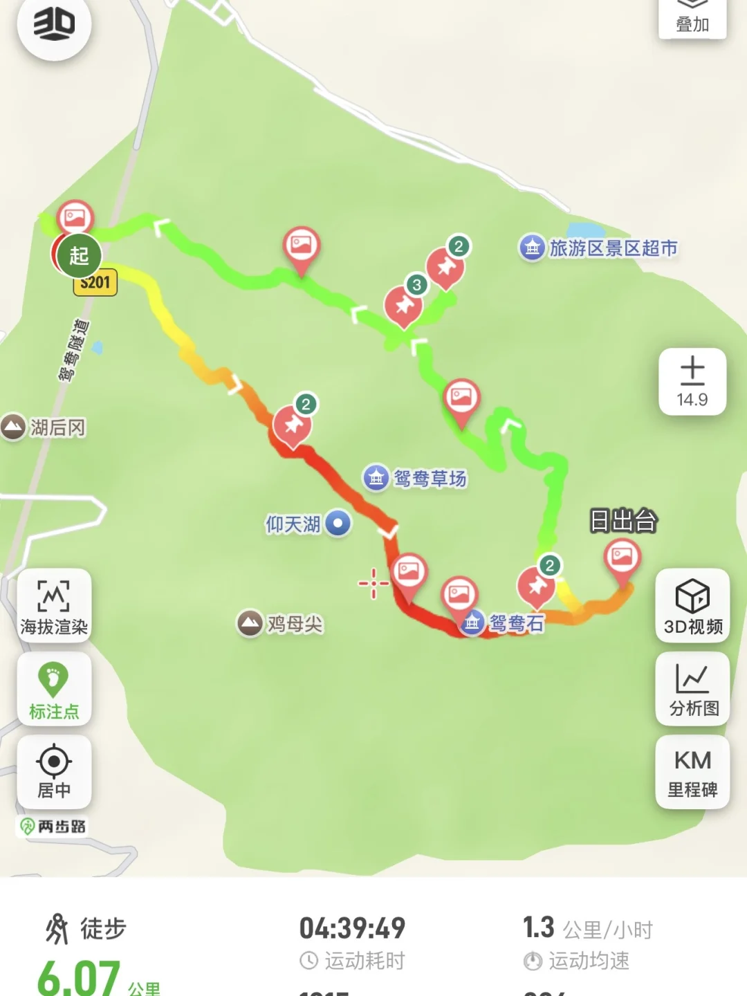 🎫门票路线:起点鸳鸯石走小环线大概6km