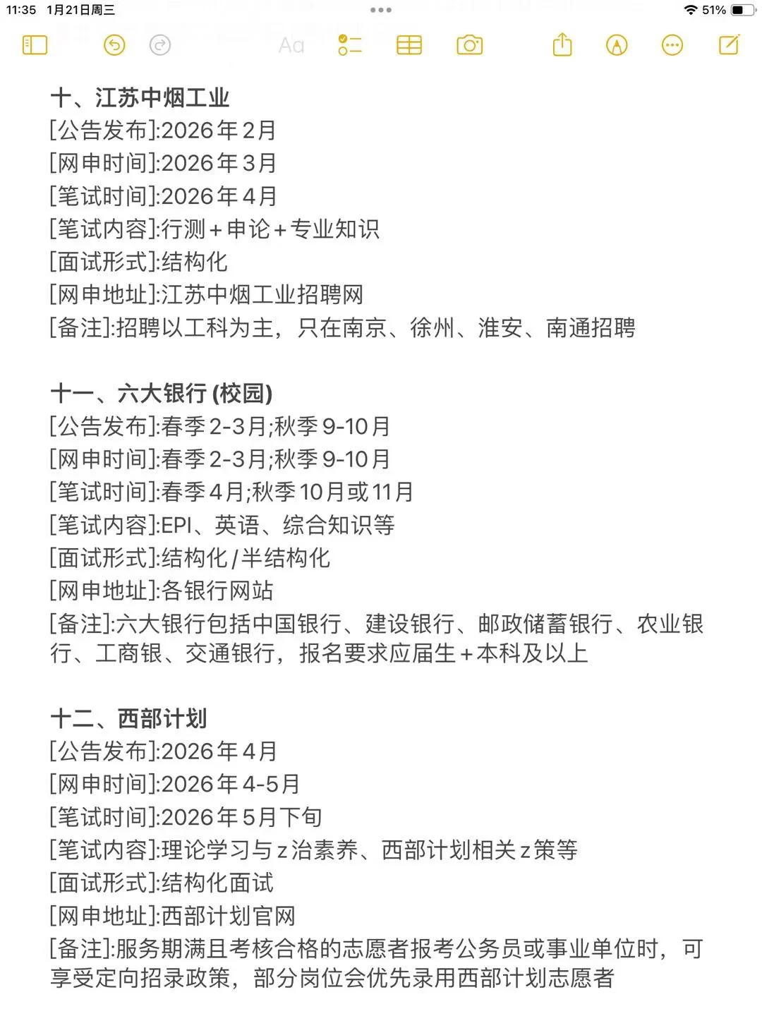 11、六大银行:9-10月报名,10-11月考试