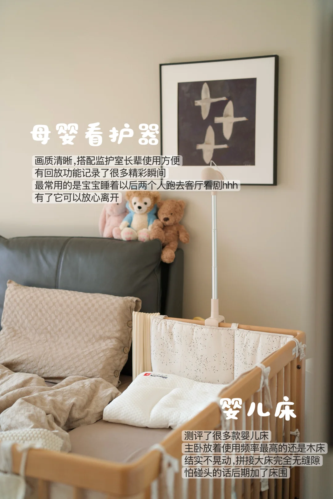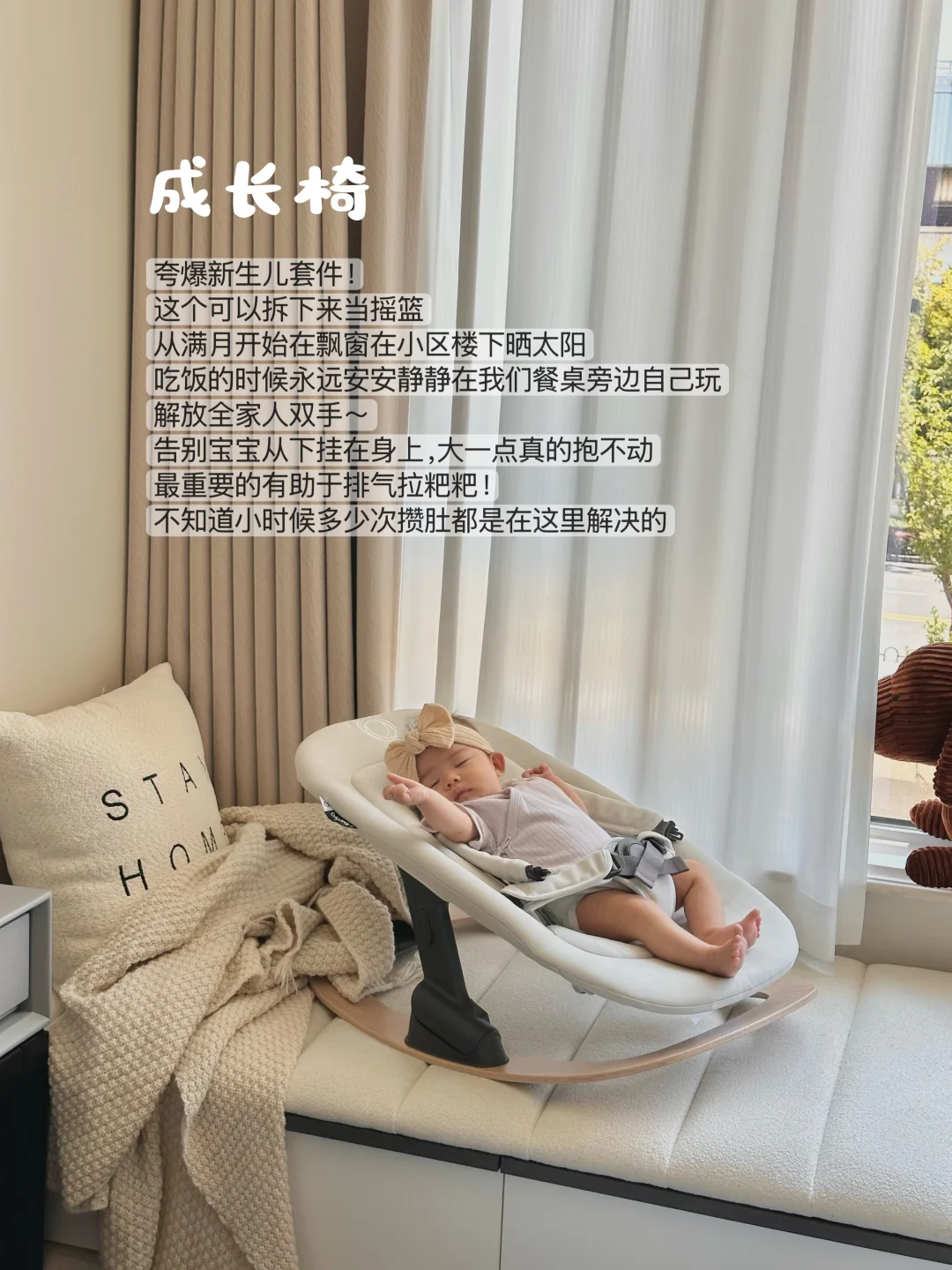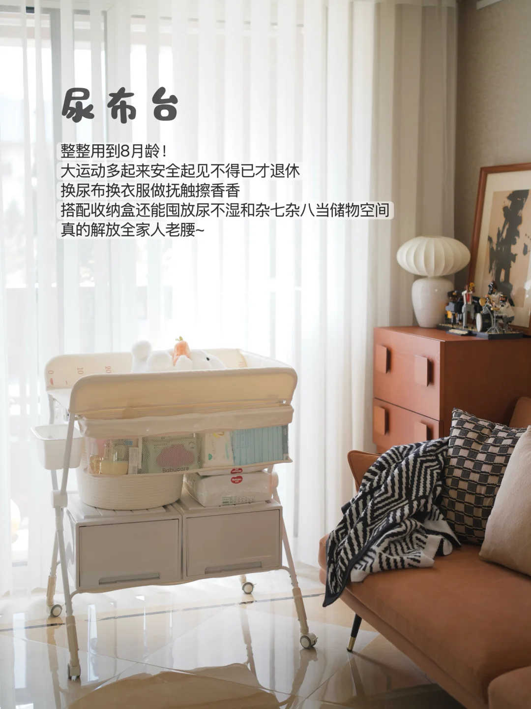 👶🏻养娃9个月, 有娃的生活绝不是轻松,但相对从容 当妈后的生活也绝对不是永无止境的“抱着,哄着” 想要有自己的时间 那就多亏了这些解放双手的大件✨ ✨年终盘点✨ 给大家分享下那些在我家闪闪发光的好物吧 ①尿布台 关键词:省腰 收纳 一站式中心 ②成长椅 关键词:一物多用 长期主义 解放双手 ③安全座椅 关键词:安全底线 移动小床 出门自由 ④喂养台 关键词:一站式喂养 方便省事 全家参与 ⑤母婴看护器 关键词:省心 记录瞬间 安全放心 ⑥婴儿床 关键词:必备 看中基础功能 分床不分房 ⑦床中床 关键词:小月龄友好 安全感 移动小床 ⑧浴盆 关键词:基础功能即可 ⑨婴儿车 关键词:必备 长期主义 有效户外