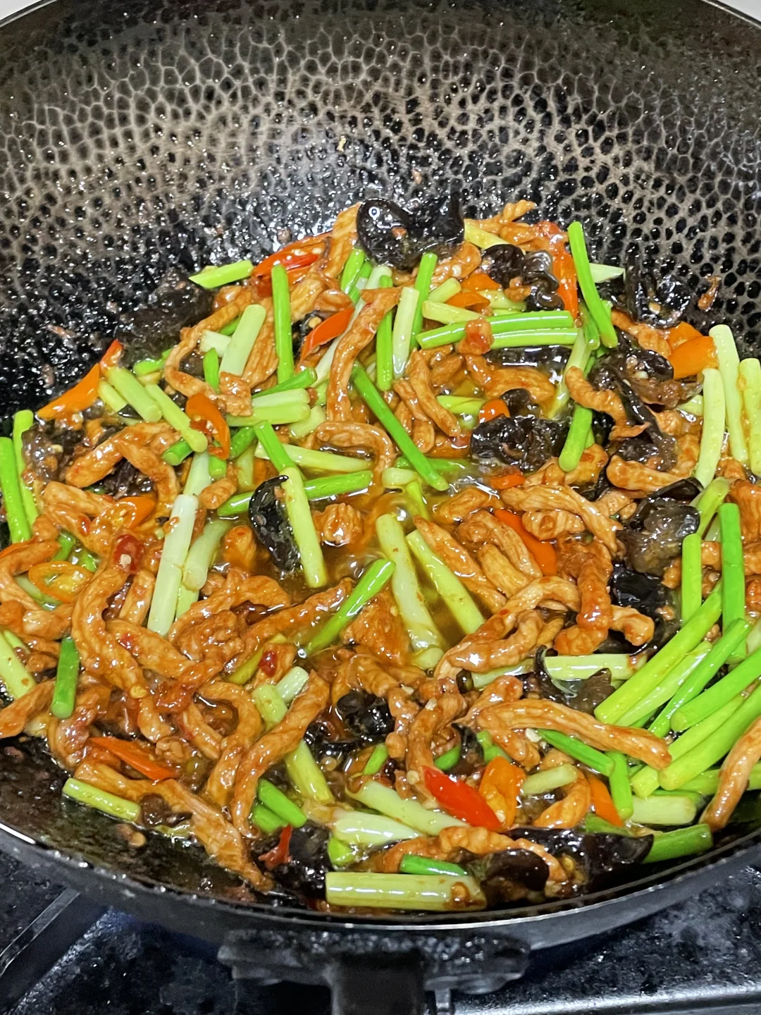 姐妹们,今天给大家出一个下饭菜,蒜苔炒肉丝。木耳和蒜苔脆爽,瘦肉嫩滑,真的是巨下饭。也可以作为年夜饭的小炒上桌。喜欢的姐妹可以尝试做一下。