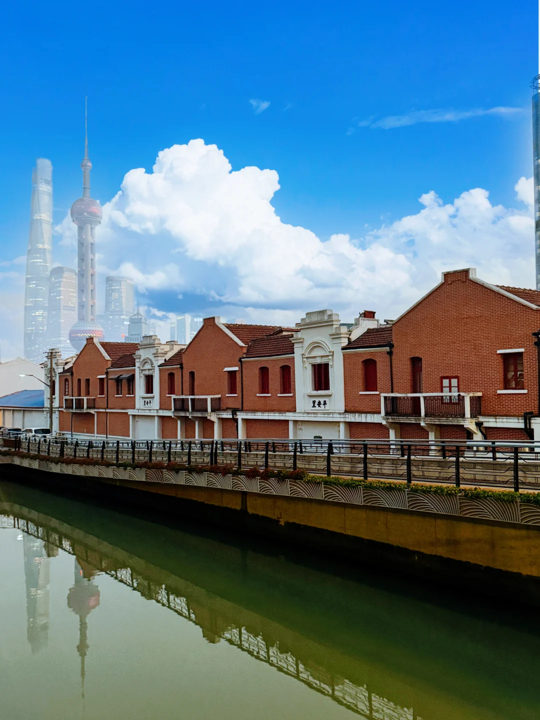 一排红色的建筑🏘️感觉像在国外,还可以拍到后面的东方明珠三件套,这里需要白天来