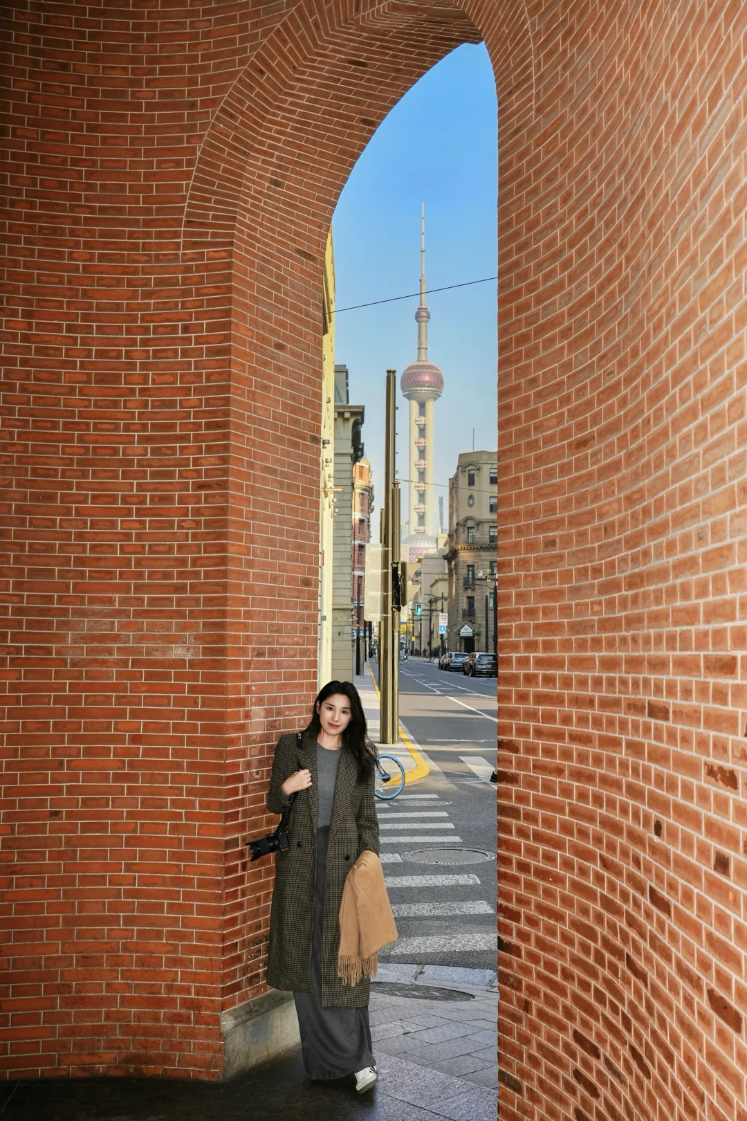 这里的拱形门投过去可以拍到东方明珠💎可以用拱形门为画框,也是超级绝的一个机位🤳