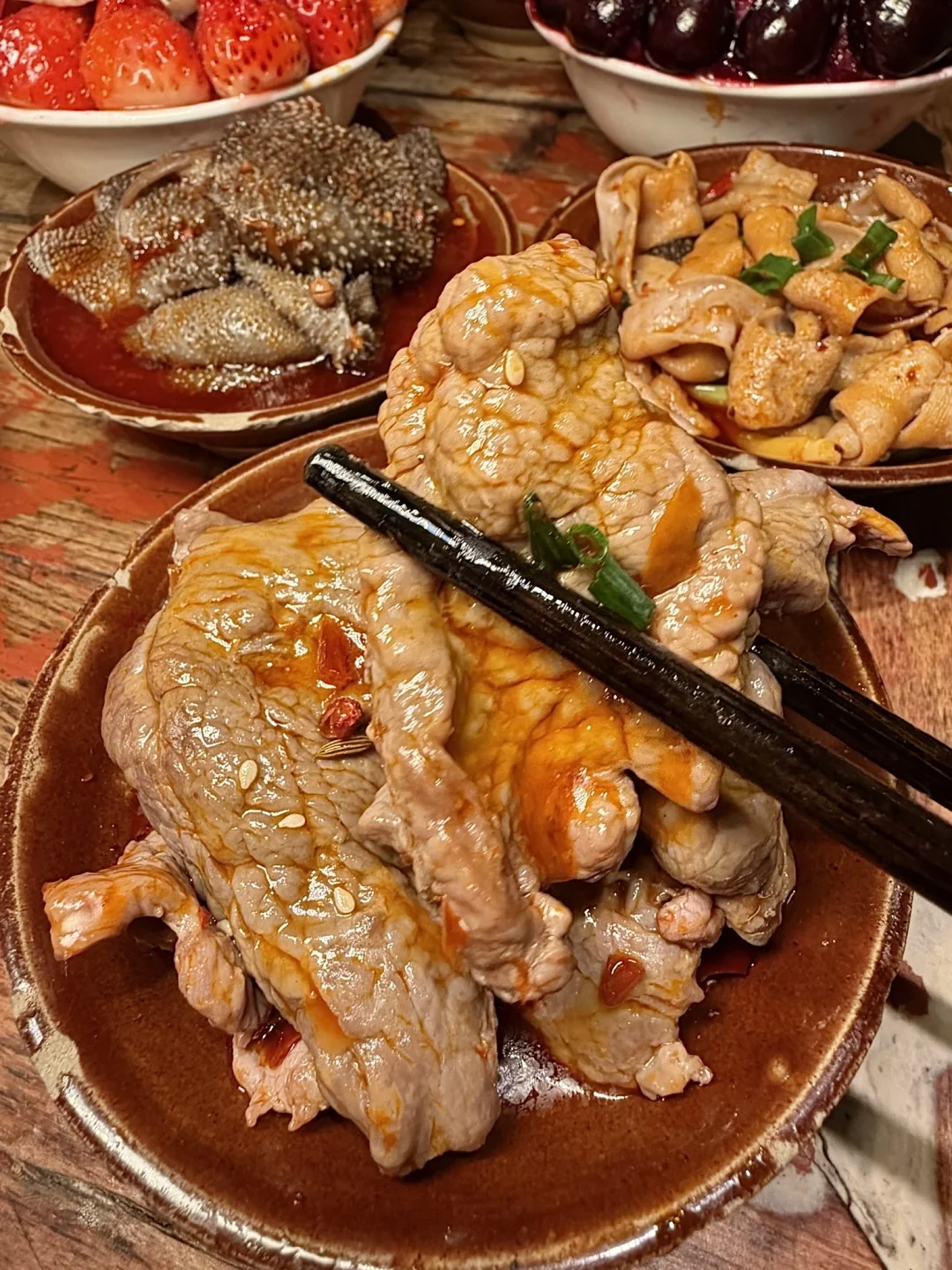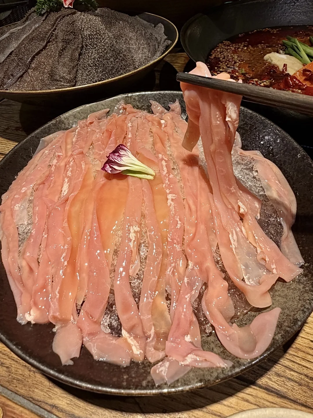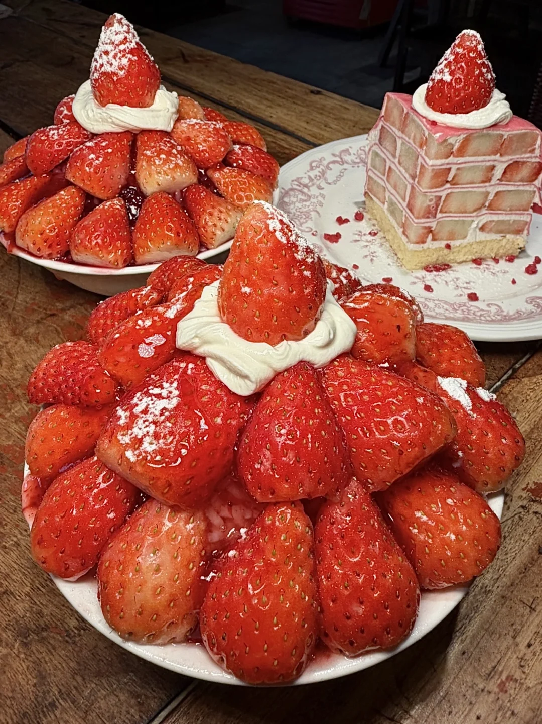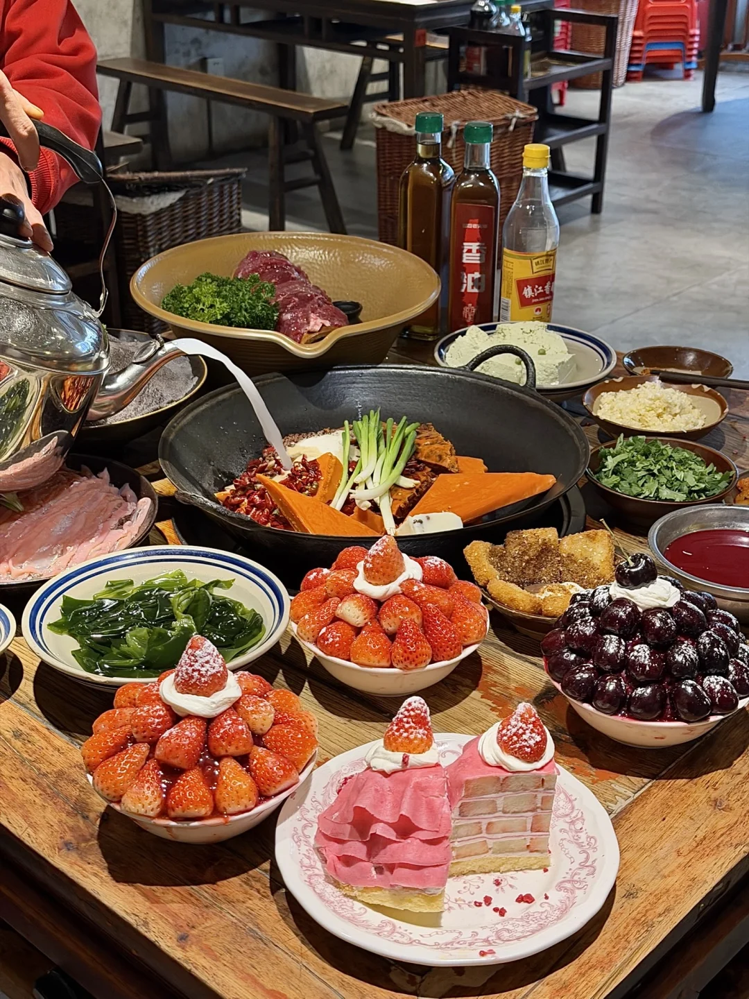 小韩同款吃上了!!!巨多草莓🍓的草莓千层 !! 好扎实的一块🤤这个横切面我真是爱惨了,一口下去太满足了,好好吃啊啊😭 草莓雪冰、车厘子雪冰…奶味超浓酸酸甜甜的,很解腻!! 他家火锅也很不戳✌️红油辣锅嫩牛肉、鸭肠、鲜毛肚越煮越香🥹