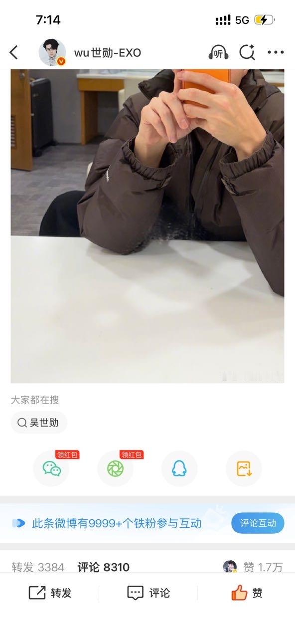 吴世勋铁粉10分钟破万 吴世勋突袭发博,十分钟破铁粉9999+无预告无空降超话,还是工作日韩籍艺人最快记录📊 吴世勋挡脸自拍