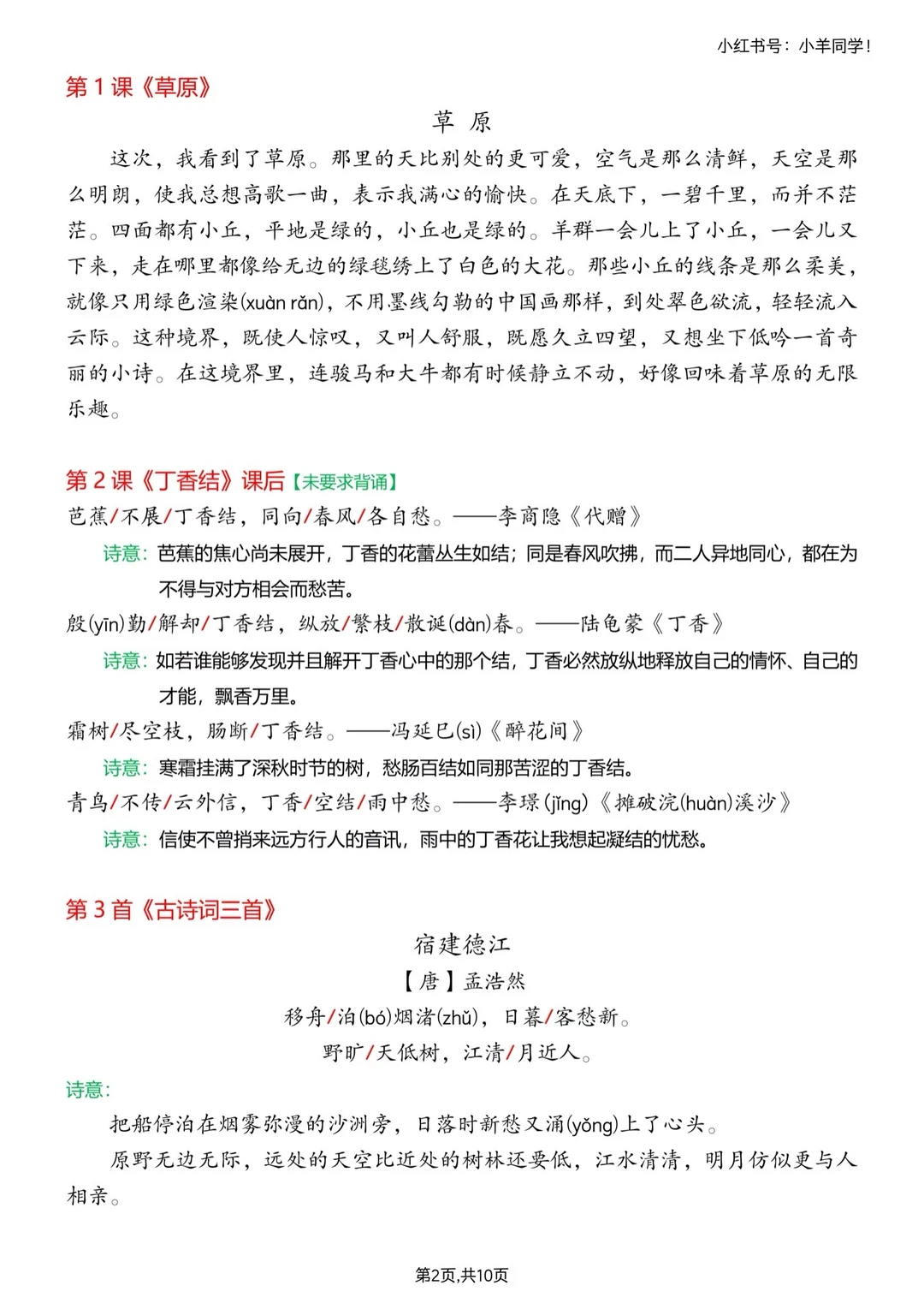 内容:共10页。 🔥在这个炎热的夏天,我们都知道一个秘密——暑假是用来超越的! 🧑🏻🎓而想要在新的学期里独占鳌头,提前背诵课文绝对是你的制胜利器! 🏂不想在新学期被同桌甩出几条街吗?赶紧提前get课文必背吧~ ⚠️原创整理,禁止转载发布网络平台或商用