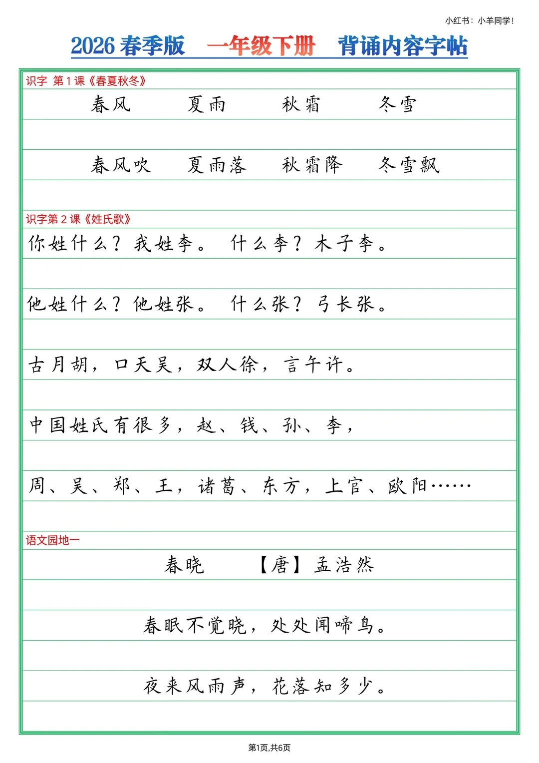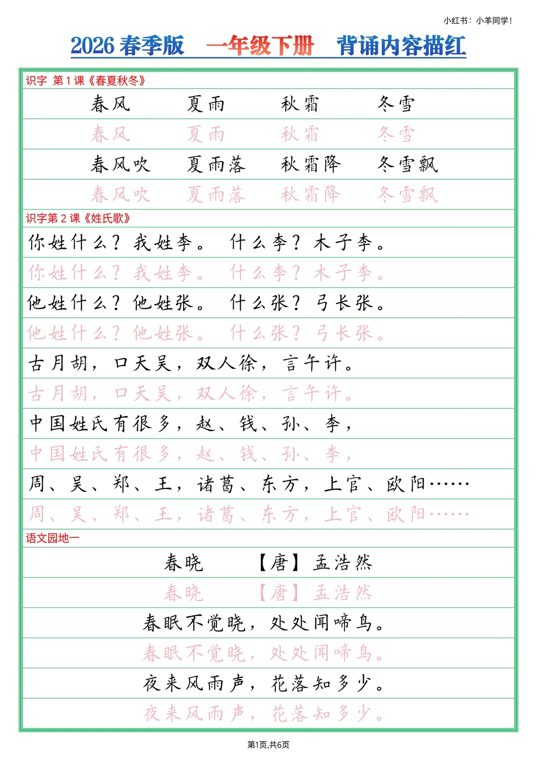 ⚠️内容为课后写字表+识字表+必背,文件虽多,只是满足不同人的需求。描红和空白字贴,工整度和字形的练习,可以根据孩子的不同需求打印。