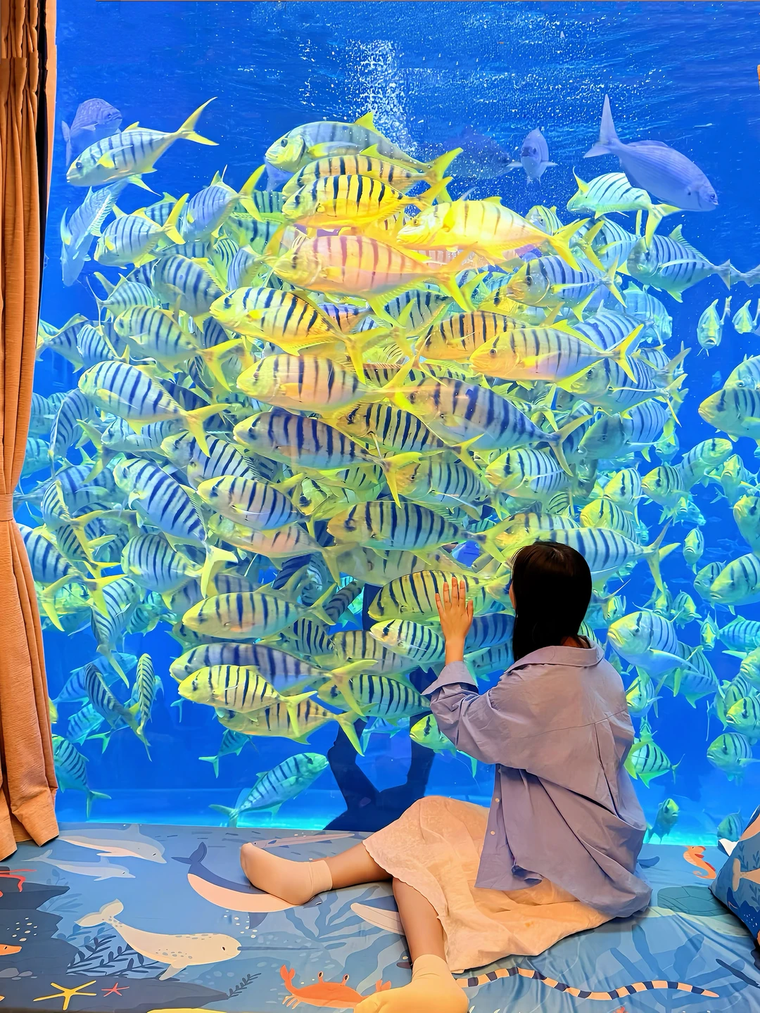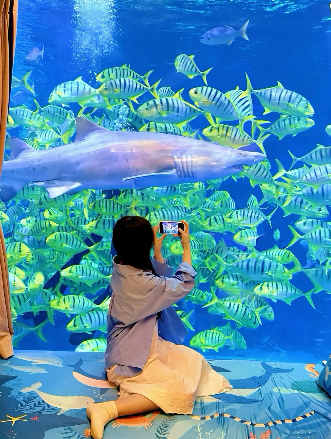 2⃣️楼|海龟憨憨地划水,小鲨鱼隔着玻璃与你对视,小黄鱼一群群像流动的阳光