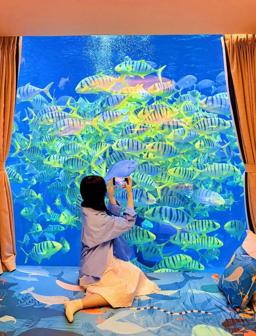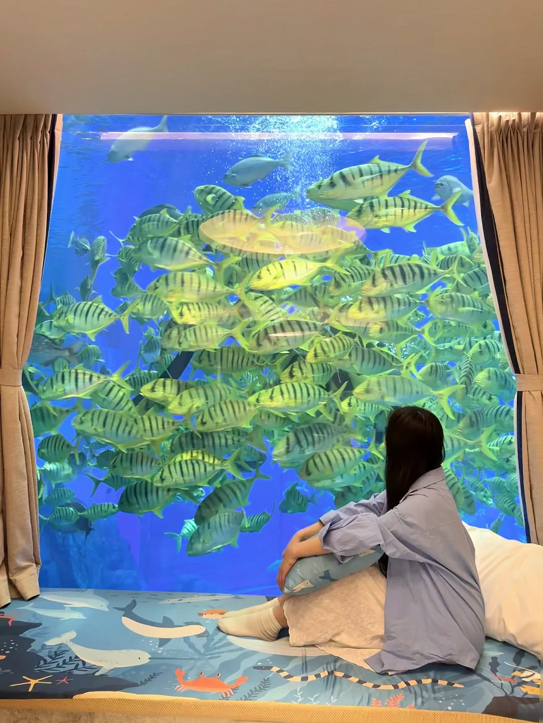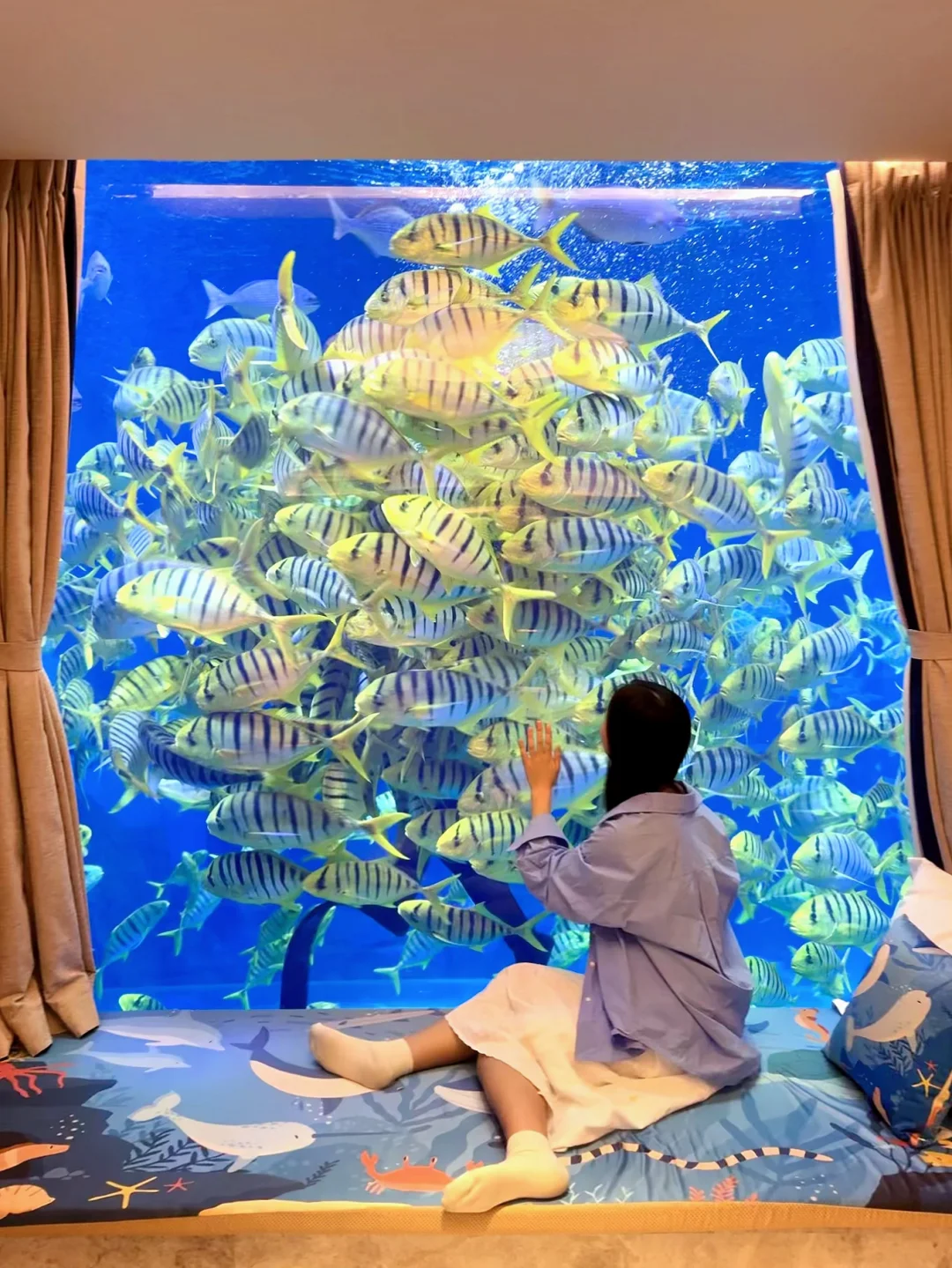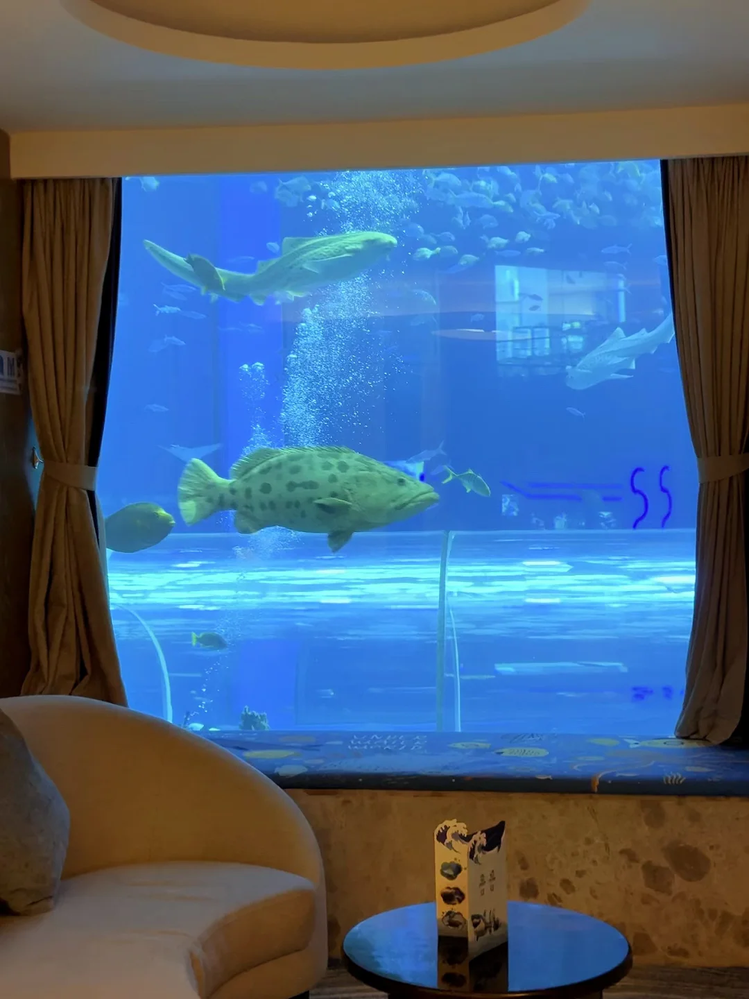 1⃣️楼|珊瑚在窗外摇曳,胖嘟嘟的石斑鱼慢悠悠游过,还有大魔鬼鱼展开翅膀一样的身体