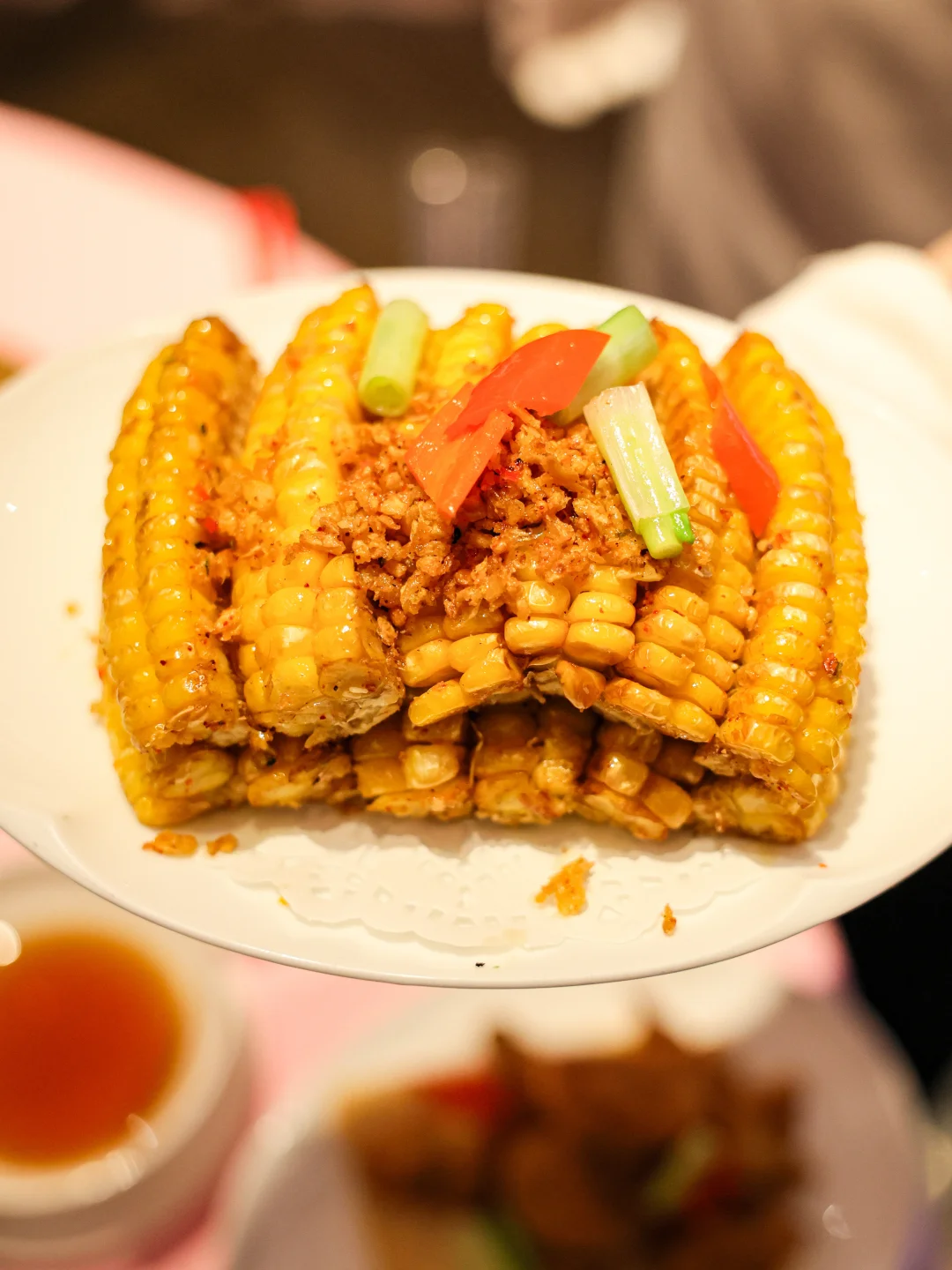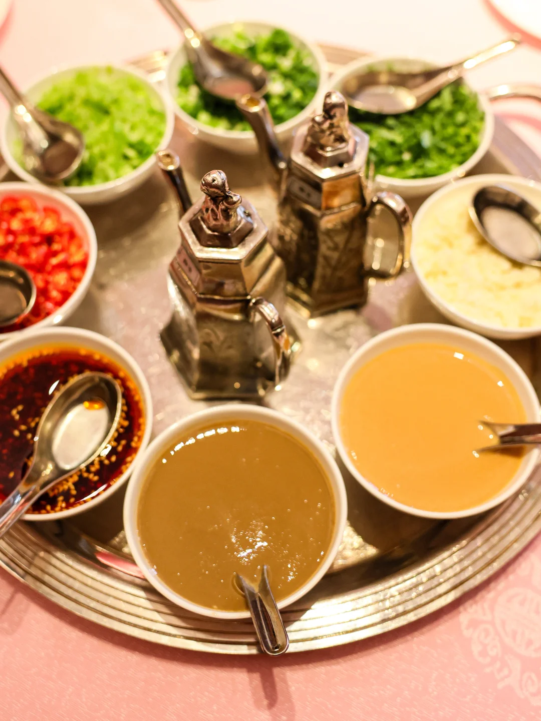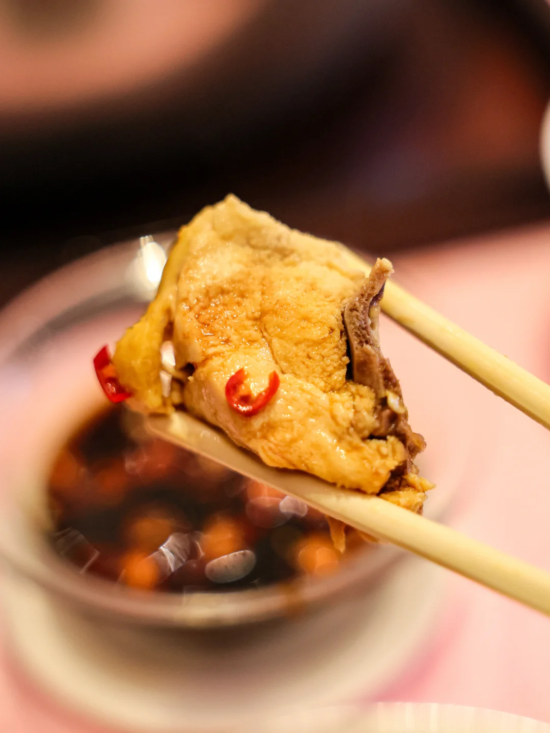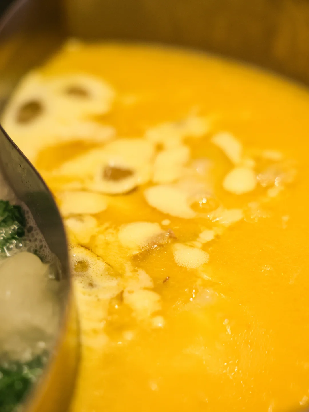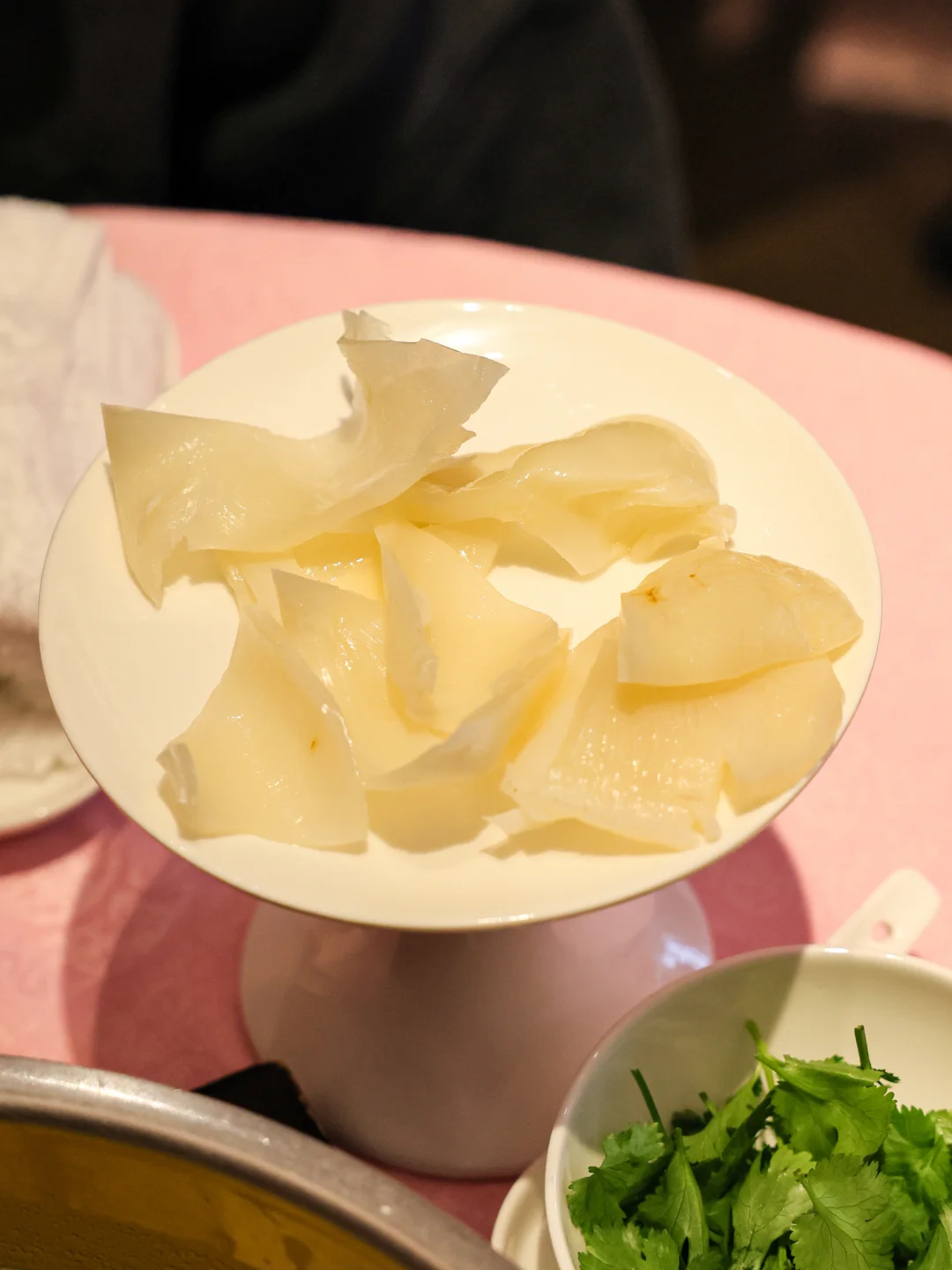 🥬香菜和皮蛋居然能一起做火锅汤底,一开始我还很疑惑,但喝汤的时候真的觉得很鲜诶! 尤其是服务员帮忙分装喝汤的时候,皮蛋像是给汤挂了一层浆,同时带一点浑浊的感觉,但是是很厚实的咸鲜味,还有大颗的马蹄碎提供甜味。 🐔双拼另一侧的花胶鸡汤也真是标准答案,醇厚滋补,带点黏嘴巴的胶质感,这么冷的天气喝一碗不要太舒服的啦。 🐸小菜的蛙腿和炸玉米都很清脆,前者带有椒盐味,后者更接近烧烤味,偏爱蛙腿一点。 🥩牛肉拼盘里的牛肉粒真好吃哇,小小一粒又有油香,又吸汤汁,真是美味🫨