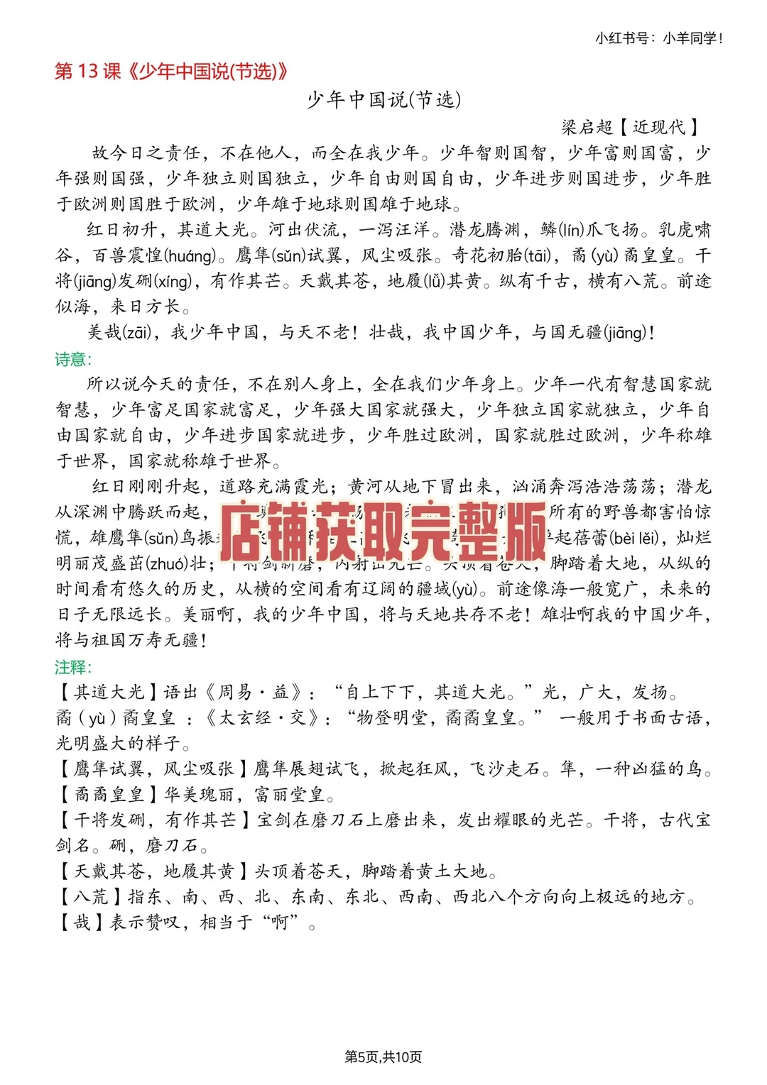 内容:共10页。 🔥在这个炎热的夏天,我们都知道一个秘密——暑假是用来超越的! 🧑🏻🎓而想要在新的学期里独占鳌头,提前背诵课文绝对是你的制胜利器! 🏂不想在新学期被同桌甩出几条街吗?赶紧提前get课文必背吧~ ⚠️原创整理,禁止转载发布网络平台或商用