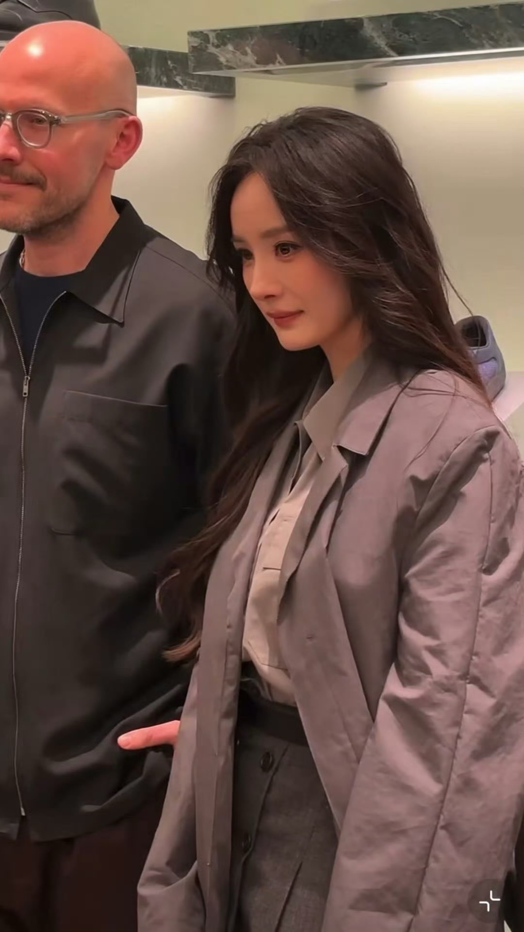 杨幂这什么时候的合影!好瘦好酷妈呀