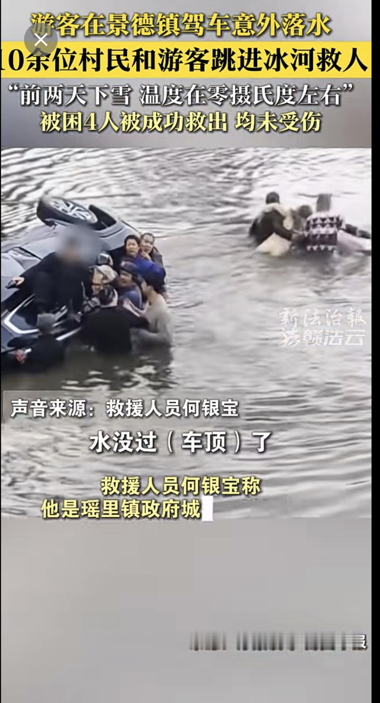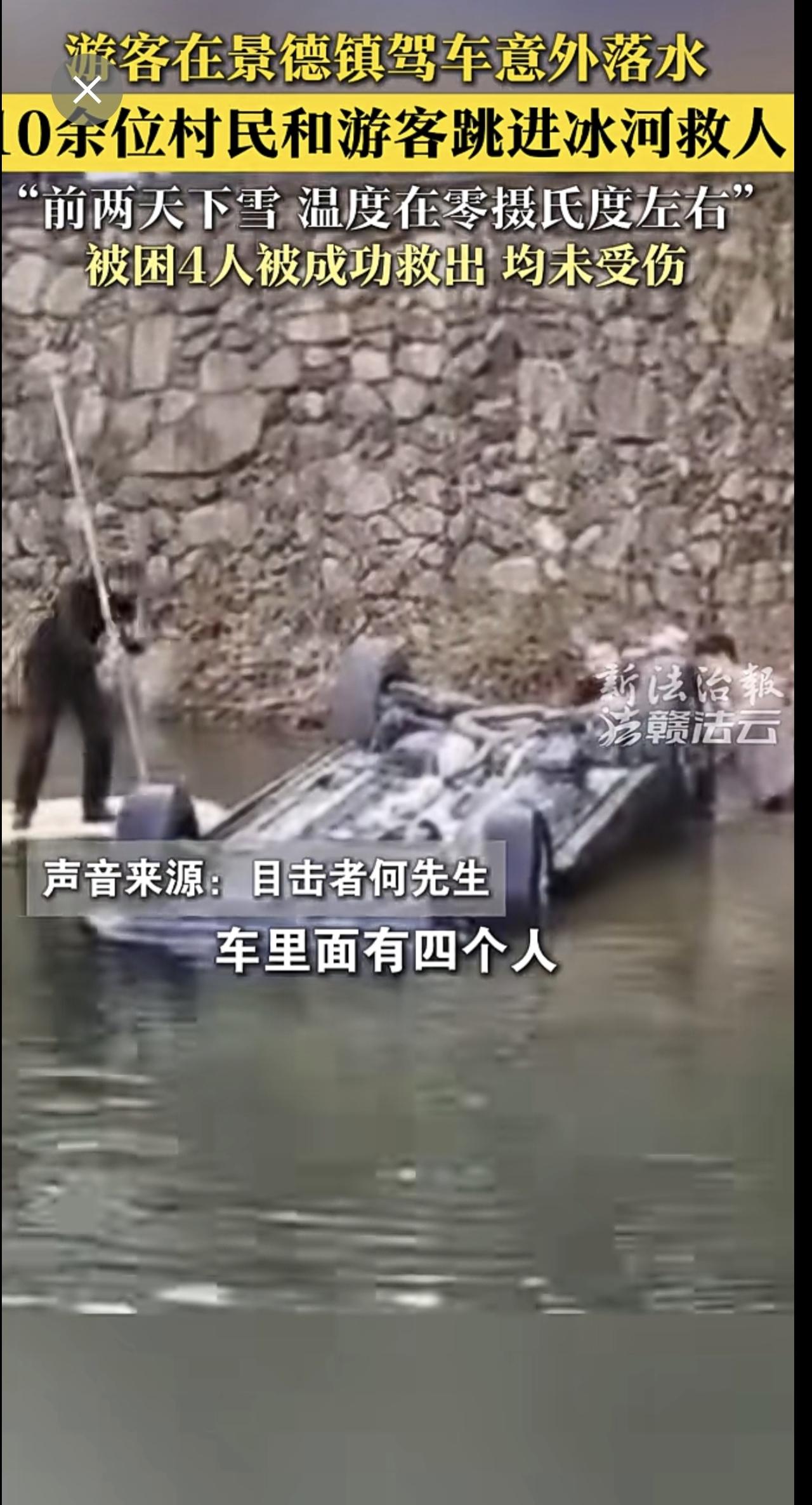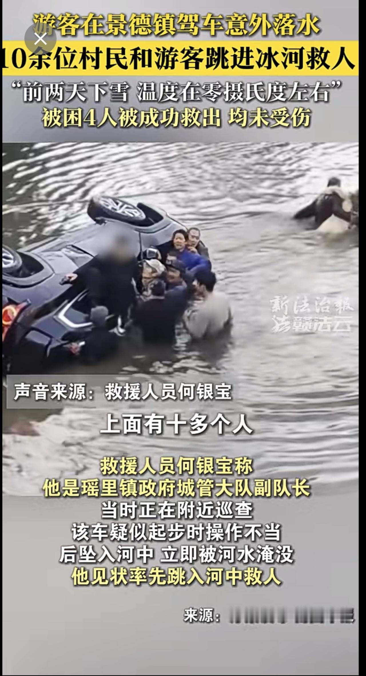 游客在景德镇驾车意外落水,10余位村民及游客跳进冰河救人!正能量 暖新闻 江西是个好地方