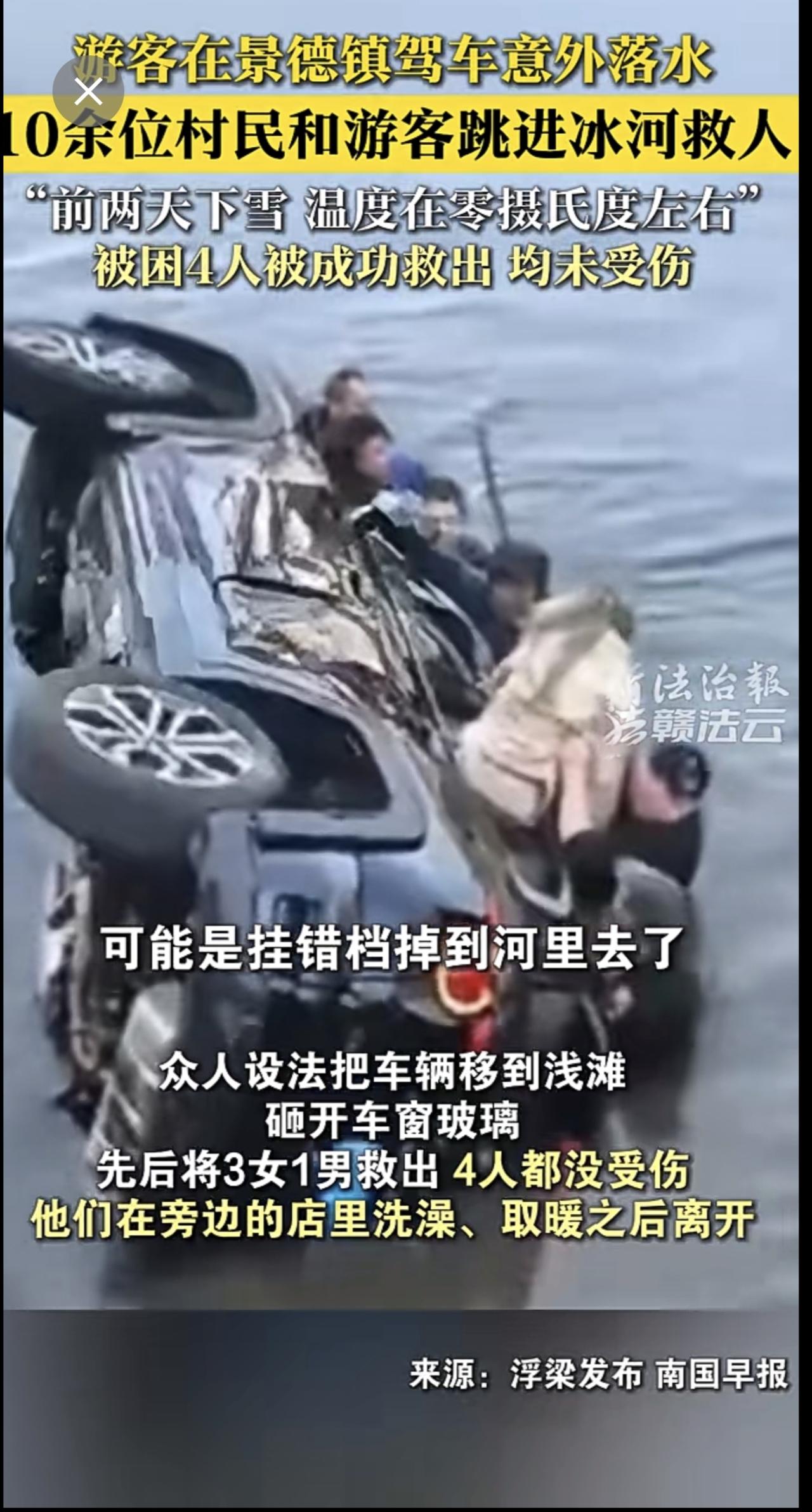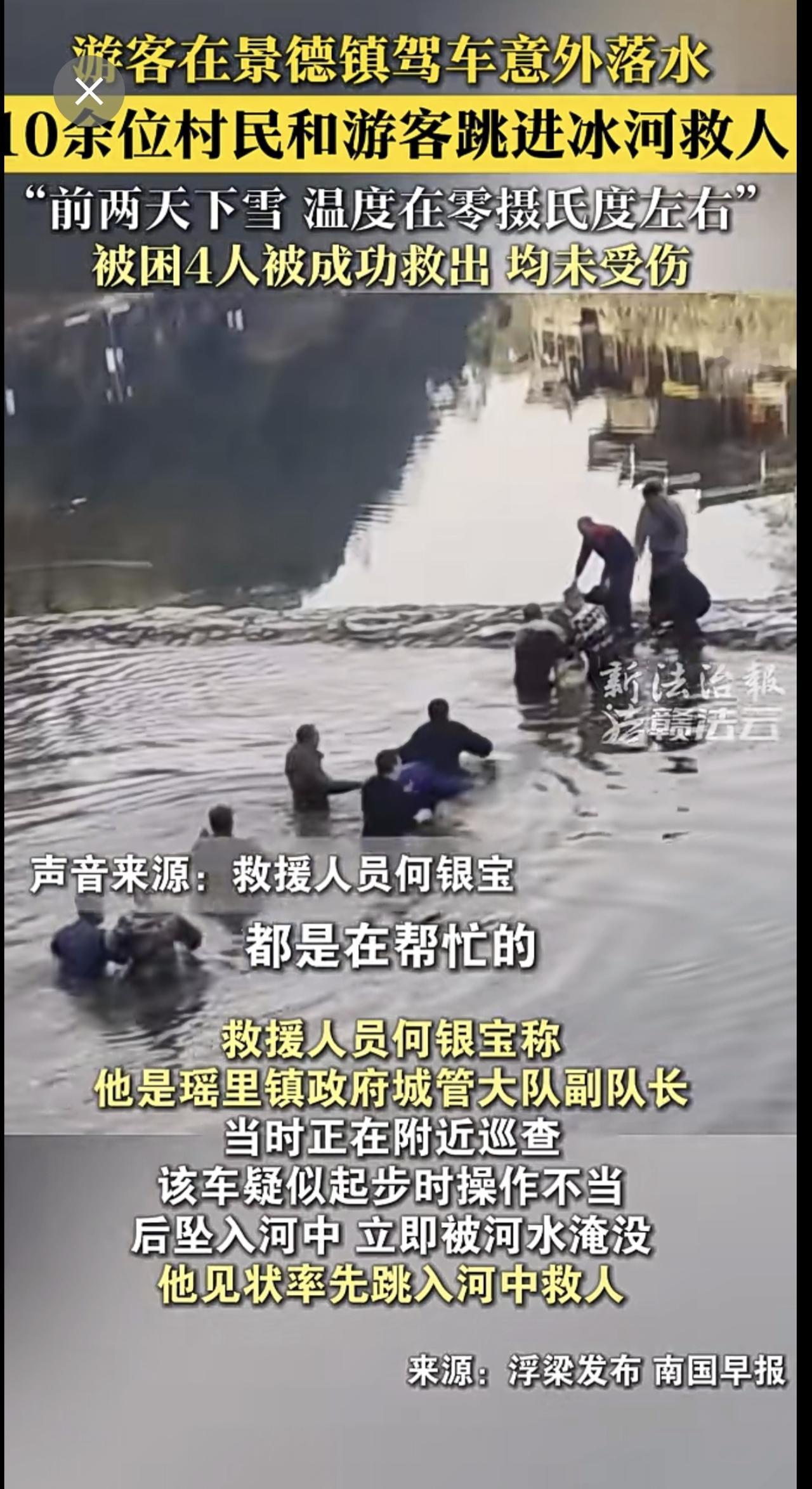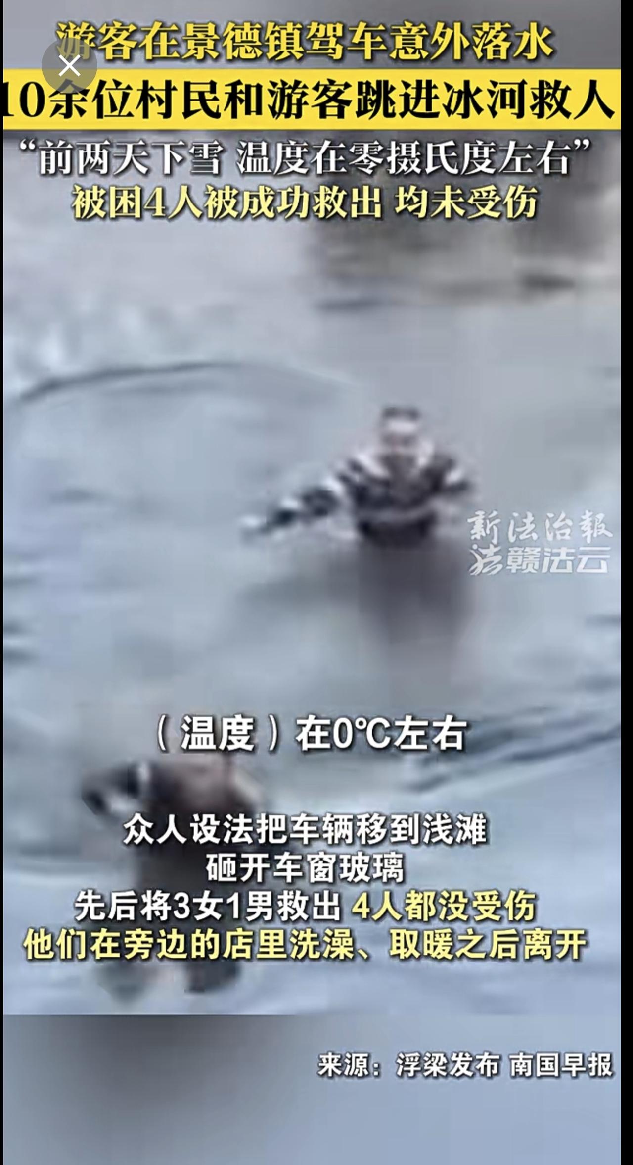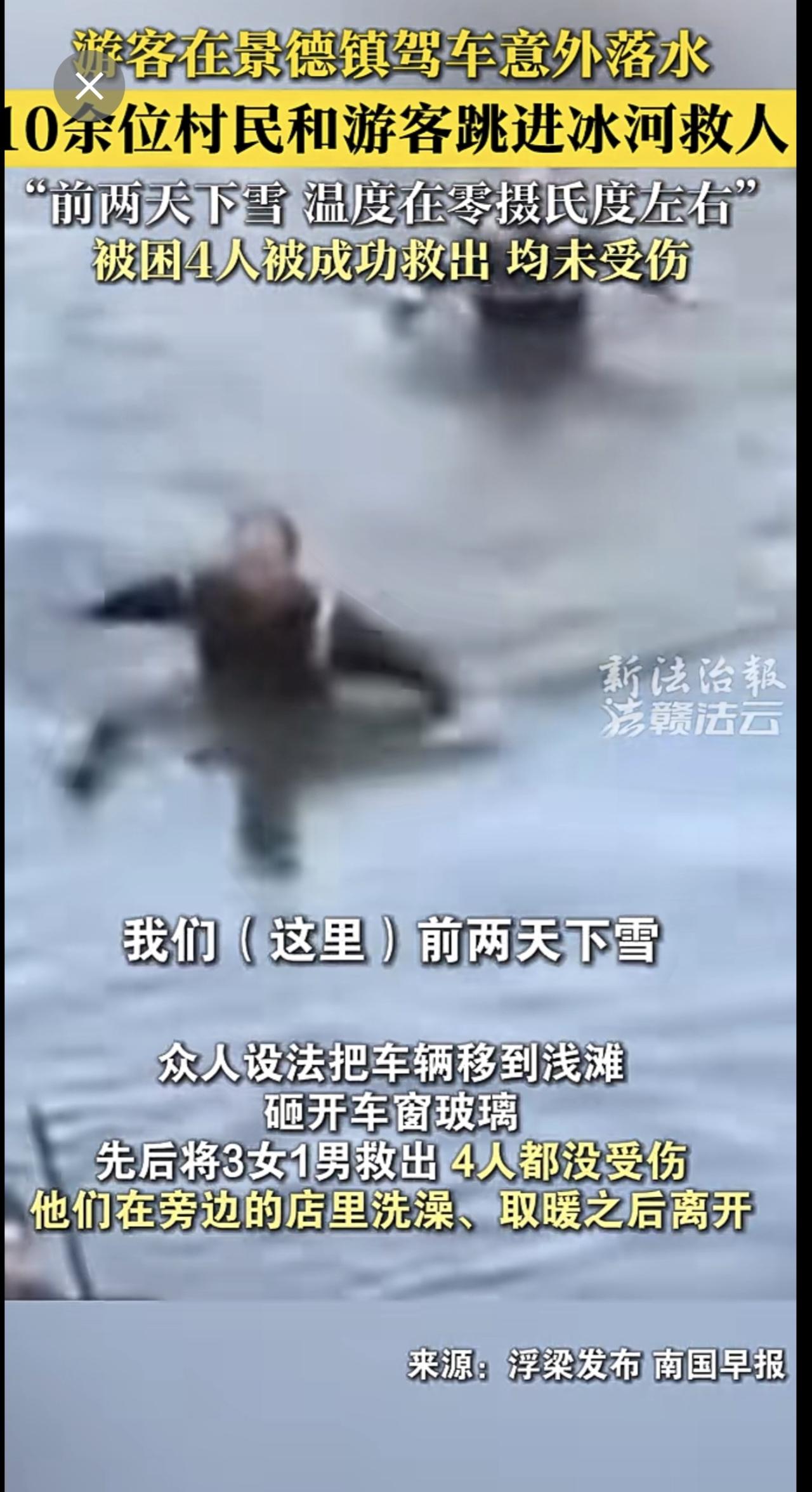游客在景德镇驾车意外落水,10余位村民及游客跳进冰河救人!正能量 暖新闻 江西是个好地方