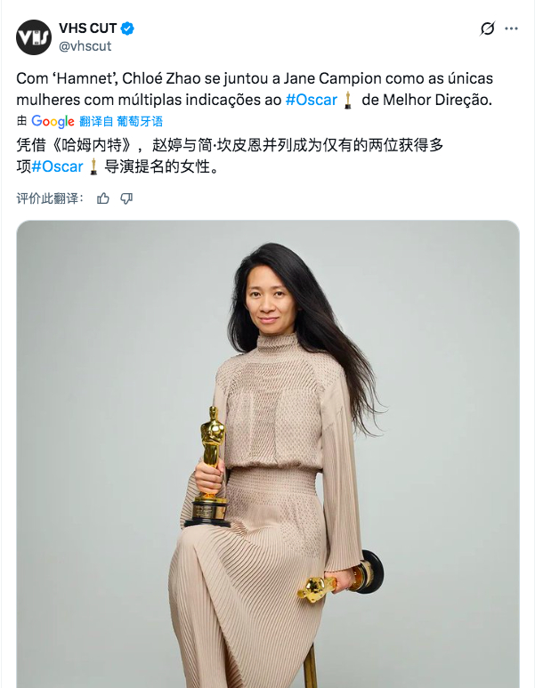 TNABO 赵婷成为历史第二位二度获得奥斯卡“最佳导演”提名的女性影人,先前只有