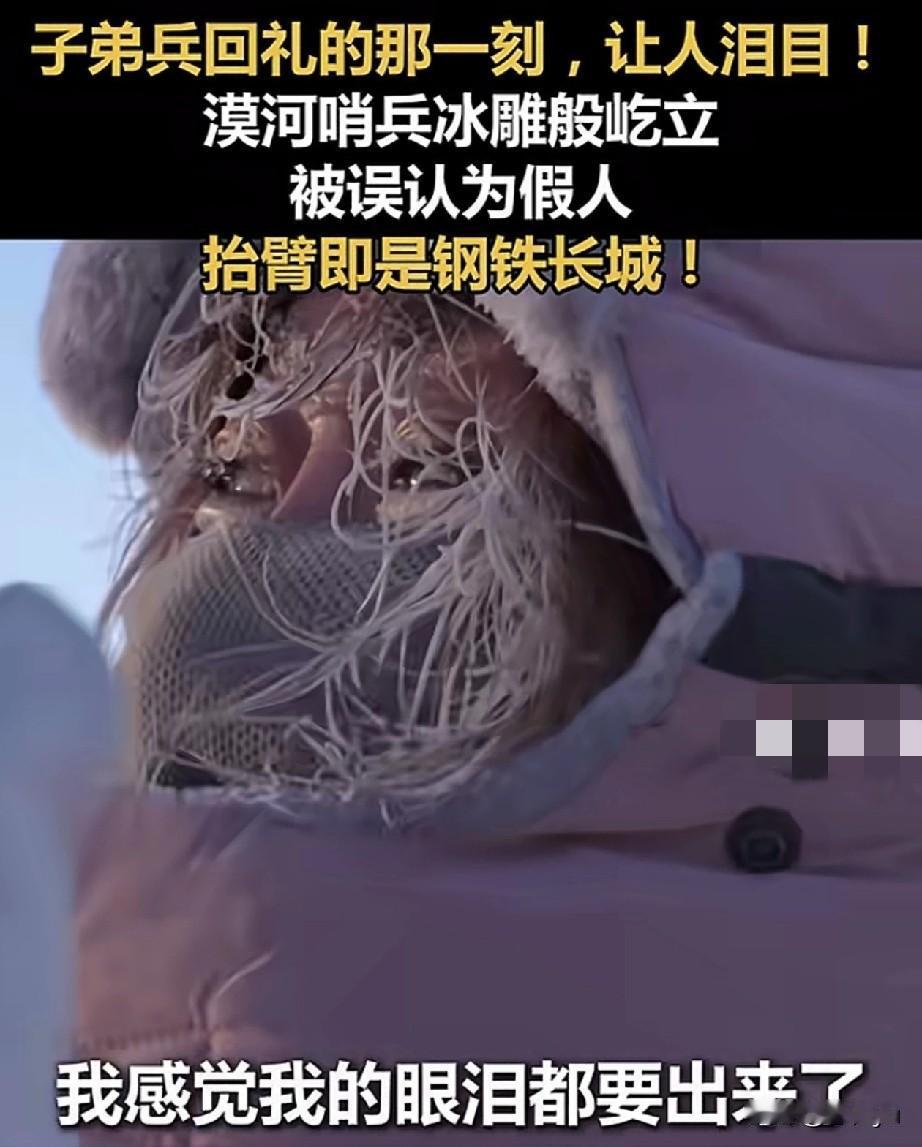 “中国最北哨位”漠河哨兵冰雕般屹立被误认为假人,回礼那一刻,让人泪目。 网上视频,哨位前几米远 女游客1:是真的吧? 女游客2:假的! 女游客1:我看真的吧! 男游客敬礼,两哨兵齐声“敬礼”,回礼。 游客兴奋不已,齐声高喊:是真的! 女游客1:我就说看见那个嘴。 女游客2:(蹦跳、呵呵笑) 女游客1:快收起来吧,冷!(哭腔) 女游客2:我感觉我的眼泪都要出来了!(哭) 抬臂即是钢铁长城! 致敬边防军人! 致敬最可爱的人! 漠河 漠河温度预报 漠河旅游 漠河火车站 漠河界碑