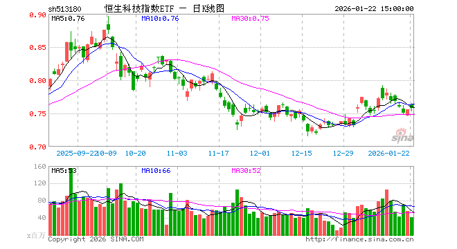 1月22日,恒生科技指数ETF(513180)涨0.26%,成交额31.62亿元。当日份额增加800.00万份,最新份额为697.52亿份,近20个交易日份额增加32.56亿份。最新资产净值计算值为532.48亿元。