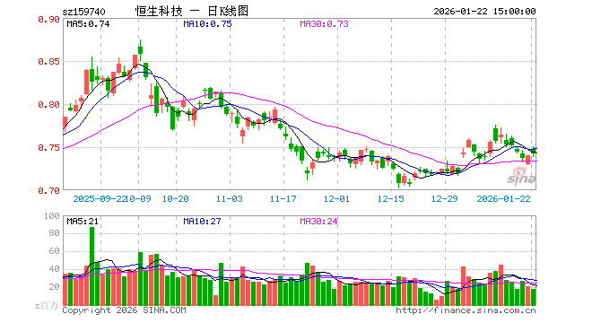 1月22日,恒生科技ETF大成(159740)涨0.27%,成交额12.93亿元。当日份额减少100.00万份,最新份额为263.62亿份,近20个交易日份额增加8.15亿份。最新资产净值计算值为197.58亿元。