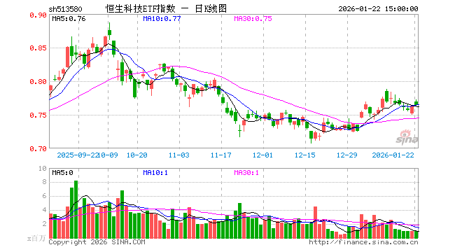 1月22日,恒生科技ETF指数(513580)涨0.13%,成交额7339.81万元。当日份额增加1000.00万份,最新份额为72.87亿份,近20个交易日份额增加1.79亿份。最新资产净值计算值为55.00亿元。
