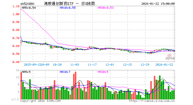 1月22日,港股通创新药ETF(520880)跌1.13%,成交额2.54亿元。当日份额增加1.56亿份,最新份额为45.38亿份,近20个交易日份额增加3.60亿份。最新资产净值计算值为23.96亿元。