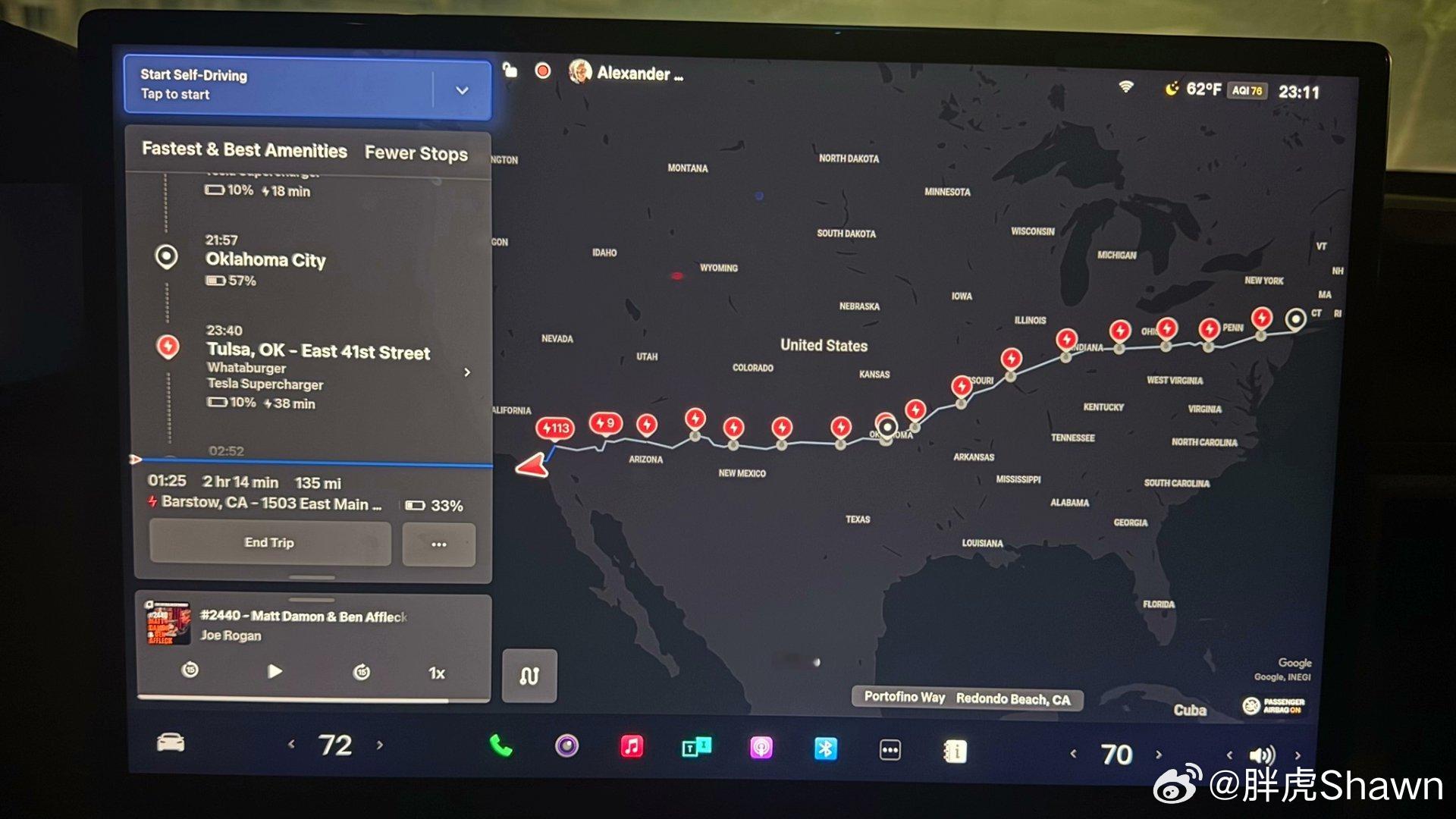 老美又有网友用FSD V14.2.2.3 ,从洛杉矶开到纽约了全程 3081 英里,全程无人干预,总耗时 58 小时 22 分钟,其中 充电10 小时 11 分钟,平均时速64 英里/小时对国内的辅助驾驶来说,连续开这么多公里应该没什么挑战,主要是充电也不去干预这块似乎有点问题特斯拉