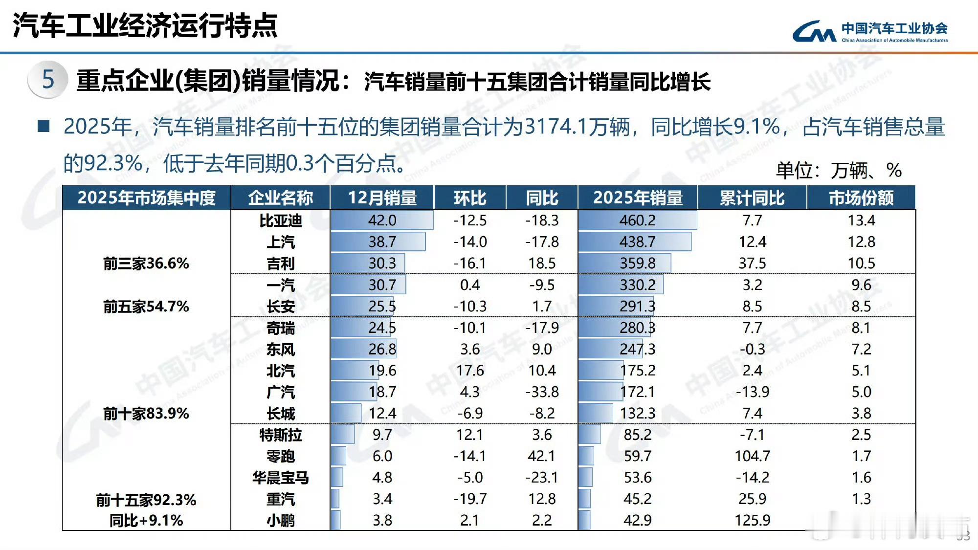 2025年汽车销量变化能看出什么中国汽车工业协会发布的数据显示,2025年,我国汽车产销分别完成3453.1万辆和3440万辆,同比分别增长10.4%和9.4%,再创历史新高。最核心的信号,是两个关键临界点的突破:新能源汽车国内渗透率首超50%,意味着每卖出2辆新车就有1辆是新能源。中国品牌市占率逼近70%,彻底改写合资品牌长期主导的格局。这不是偶然爆发,而是从政策驱动到市场自发认同的必然结果。