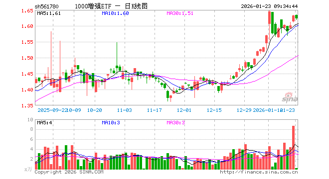 1000增强ETF(561780)业绩比较基准为中证1000指数收益率,管理人为博时基金管理有限公司,基金经理为杨振建,成立(2023-11-02)以来回报为62.47%,近一个月回报为12.78%。
