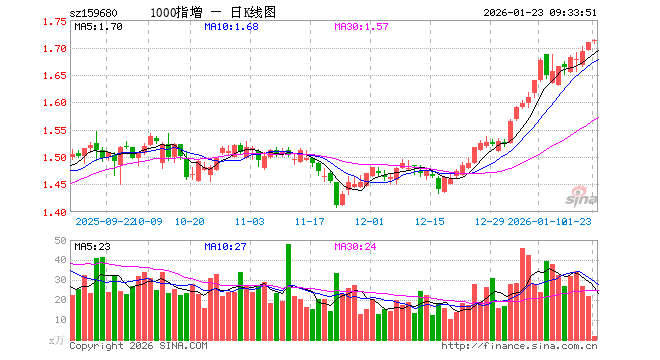 1000ETF增强(159680)业绩比较基准为中证1000指数收益率,管理人为招商基金管理有限公司,基金经理为蔡振、文雨,成立(2022-11-18)以来回报为70.43%,近一个月回报为14.69%。