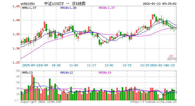 1月23日,中证A50ETF(563350)开盘跌0.07%,报1.367元。中证A50ETF(563350)重仓股方面,宁德时代开盘涨0.64%,贵州茅台涨0.00%,中国平安涨0.62%,中际旭创跌1.13%,紫金矿业涨1.94%,招商银行涨0.00%,美的集团涨0.10%,长江电力涨0.19%,立讯精密涨0.39%,中信证券涨0.29%。