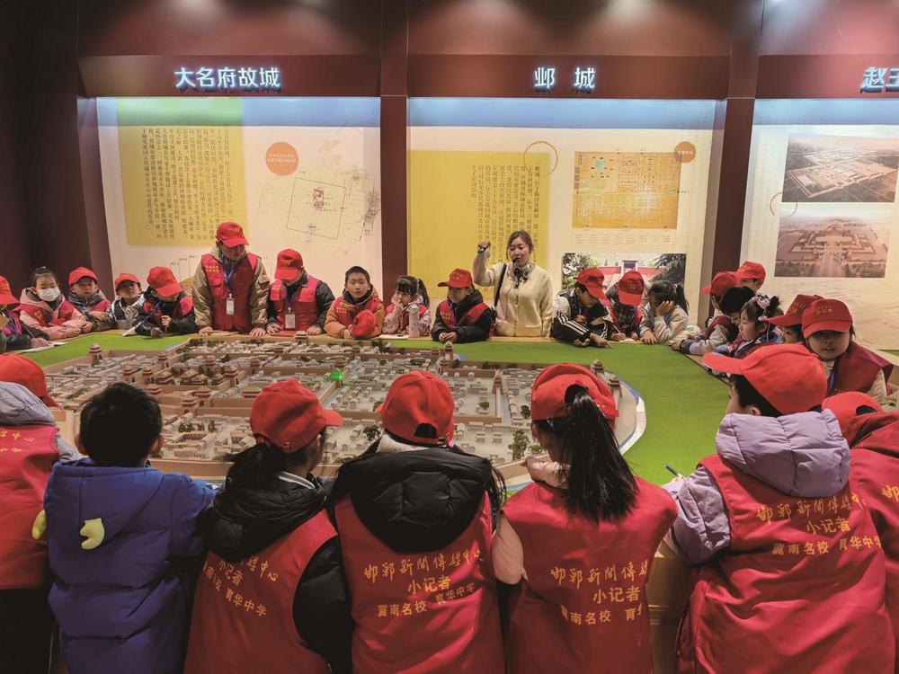 在讲解员的引导下,小记者们率先步入历史文化名城保护规划成就展区,仿佛踏上一场穿梭千年的时空之旅。展厅内,精致的沙盘模型将赵王城故城、邺城、大名府故城、广府古城等历史遗迹一一复现,让往昔的辉煌变得触手可及。
