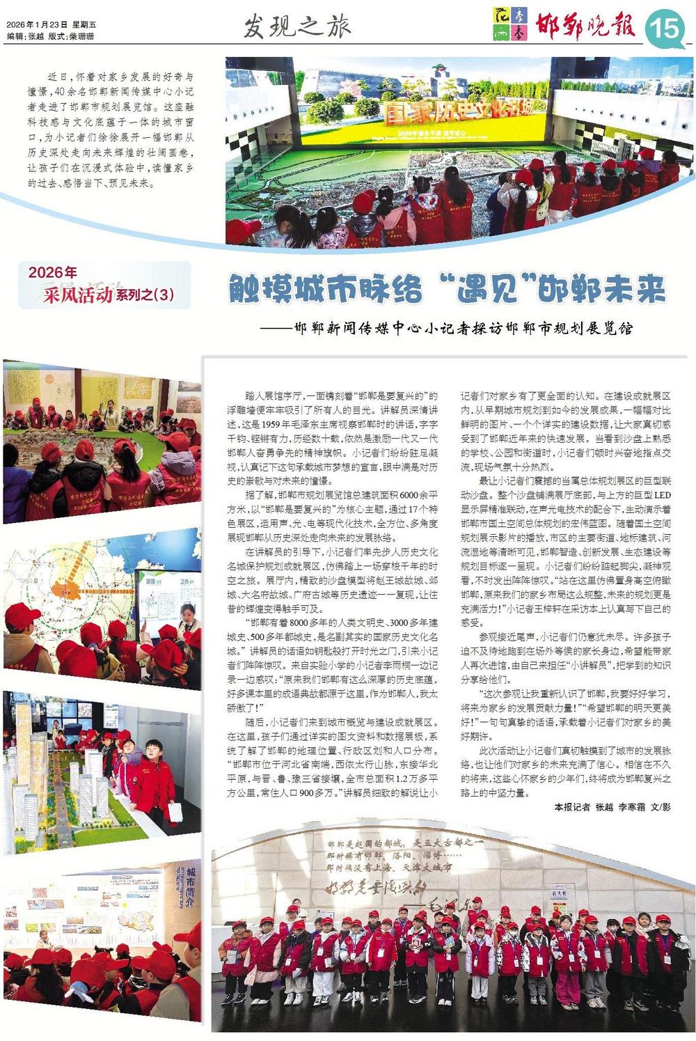 此次活动让小记者们真切触摸到了城市的发展脉络,也让他们对家乡的未来充满了信心。相信在不久的将来,这些心怀家乡的少年们,终将成为邯郸复兴之路上的中坚力量。