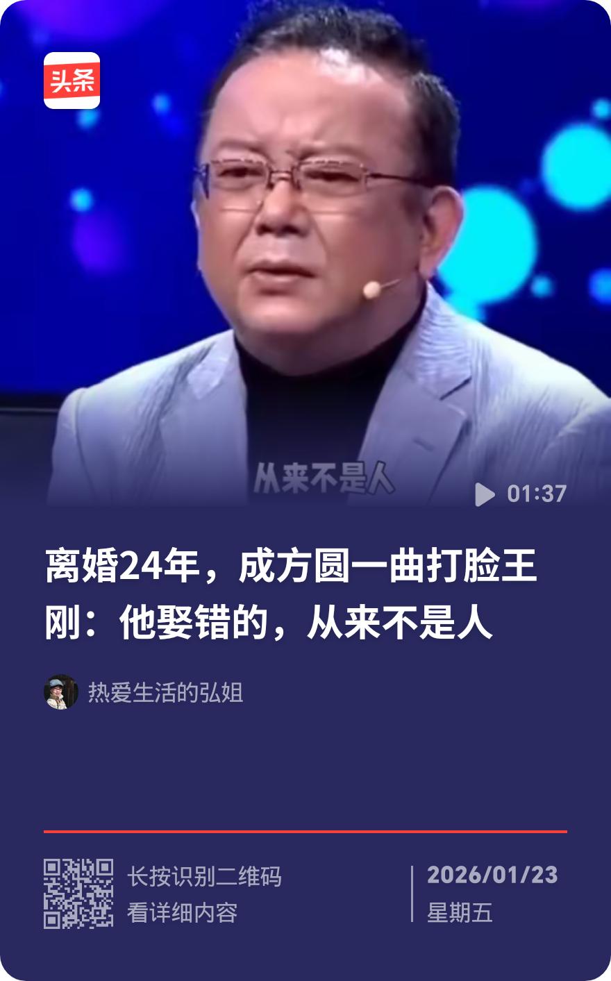 离婚24年,王刚和成方圆的人生差距简直刷新认知!64岁成方圆环游世界、被俞敏洪实名点赞,活成艺术圈洒脱标杆;70多岁王刚却要为年幼儿子拼事业,身体早已超负荷。这对昔日金童玉女的不同境遇,藏着最真实的人生选择启示。 上世纪90年代,王刚凭“和珅”一角爆红,成方圆以《童年》《游子吟》火遍乐坛,两人的结合曾是娱乐圈佳话。但看似般配的婚姻,终究败给了生活理念的根本分歧:王刚偏传统,渴望稳定家庭与子嗣传承,希望妻子回归家庭;成方圆追求艺术自由,不愿被家庭束缚,更想闯荡音乐剧舞台。 酒精矛盾、生育观念冲突让两人渐行渐远,最终体面离婚。离婚后成方圆果断赴美深造,从歌手转型音乐剧制作人,带着《音乐之声》惊艳回归,如今背着相机走遍全球,64岁仍眼里有光;王刚则延续传统路径,60岁老来得子,看似儿女双全,实则70多岁仍要为孩子学费、奶粉钱奔波,昔日荧幕风采难掩疲惫。 两人的差异本质是“自我投资”与“世俗堆砌”的选择:成方圆深耕自身、丰富精神世界,收获长久自由;王刚执着于传统圆满,却背负沉重压力。这告诉我们,幸福从无标准答案,无论是追求家庭圆满还是自我实现,关键要选契合本心的路,更要承担选择背后的代价。生活的智慧,从来都在清醒的取舍里。王刚 王刚的妻子 王刚老婆