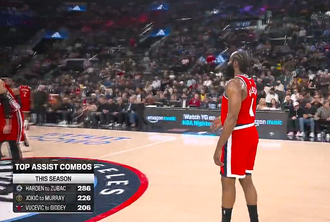 哈登助攻祖巴茨286次第一,约基奇助攻默里226次第二,武切维奇助攻吉迪206次第三。