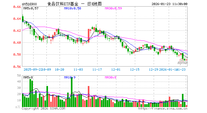 1月23日,截止午间收盘,食品饮料ETF基金(516900)涨0.18%,报0.571元,成交额121.73万元。食品饮料ETF基金(516900)重仓股方面,贵州茅台截止午盘涨0.14%,五粮液涨0.43%,伊利股份涨0.45%,泸州老窖涨0.20%,山西汾酒跌0.79%,海天味业跌0.14%,东鹏饮料跌0.82%,洋河股份涨0.14%,双汇发展跌0.51%,安琪酵母跌0.07%。