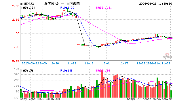 1月23日,截止午间收盘,通信设备ETF(159583)跌0.37%,报1.350元,成交额1.29亿元。通信设备ETF(159583)重仓股方面,中际旭创截止午盘跌6.10%,新易盛跌6.71%,中兴通讯涨0.08%,天孚通信跌5.79%,航天电子涨10.00%,中国卫星涨7.79%,紫光股份涨0.15%,中航光电涨2.69%,剑桥科技跌3.15%,光迅科技跌1.67%。