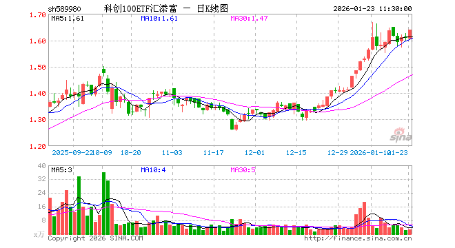 科创100ETF汇添富(589980)业绩比较基准为上证科创板100指数收益率,管理人为汇添富基金管理股份有限公司,基金经理为罗昊,成立(2025-04-25)以来回报为60.63%,近一个月回报为18.71%。