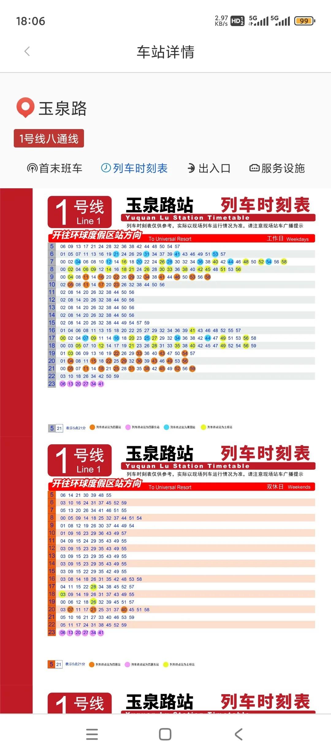 北京地铁1号线又调图了: 1.上下行早高峰间隔调整:上行2分05,下行2分(官方说辞,实际按时刻表计算间隔为2分10) 2.原古城清客苹果园折返改为古城清客福寿岭折返 3.工作日平峰间隔由6分改为7分 4.双休日早晚高峰间隔4.5分,平峰间隔5分,大小交路3:1 图2:新运营时刻表,图3:原运营时刻表地铁 上下班高峰地铁