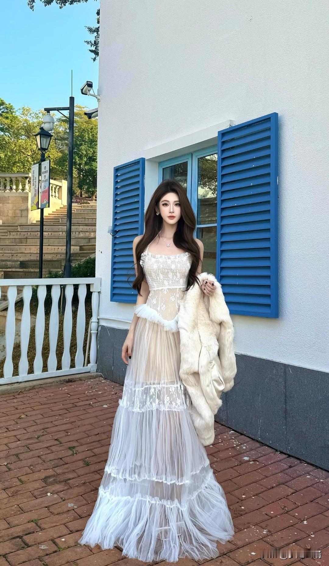 梦幻白色蕾丝裙,优雅气质满满。