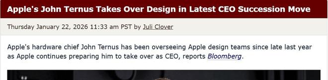 [环球网科技综合报道]1月23日消息,据MacRumors报道,自去年年底以来,苹果硬件主管约翰·特纳斯一直在负责苹果的设计团队,此举被视为苹果在为他接任首席执行官一职做准备。