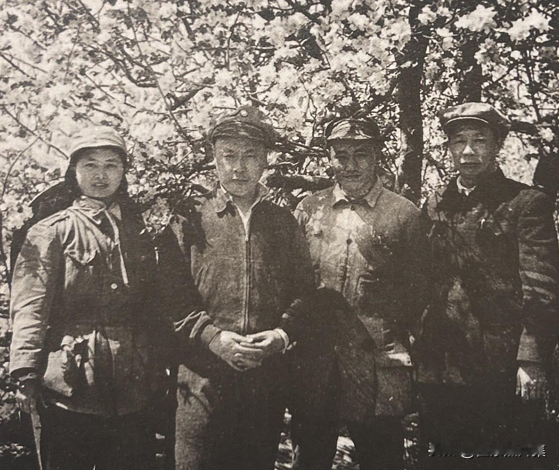 1947年,孟良崮战役前,从左至右分别是:张茜(陈毅夫人)、陈毅(华东野战军司令员)、刘瑞龙(华野副参谋长)和陈士榘(华野参谋长)在山东沂水县西王庄合影。在这次合影后不久,陈士榘协助陈毅、粟裕进行了著名的“耍龙灯”式机动,南引北调,最终抓住战机,将国民党王牌军整编74师从敌军重兵集团中割裂出来。另外,你知道刘瑞龙的姑娘是哪位领导人吗?