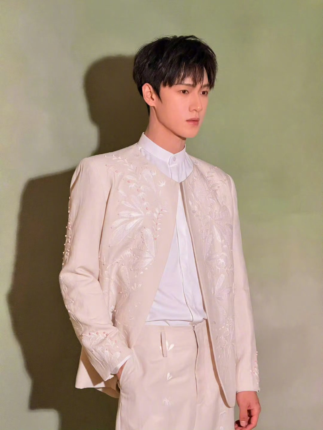 李昀锐亮相馥蕾诗线下活动,身穿一套米白色刺绣套装。服装的刺绣元素与米白基调,为造