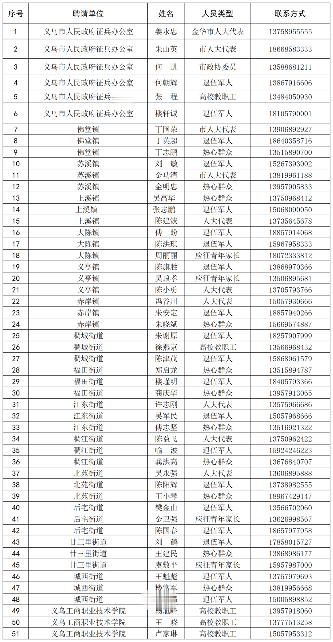 为严明兵员征集纪律规定,筑牢廉洁征兵防线,增强征兵工作透明度,自觉接受人民群众监督,保证全市征兵工作公开、公平、公正,现依法将义乌市镇(街道)2级廉洁征兵监督员及监督举报电话予以公布,欢迎社会各界对征兵工作进行监督。