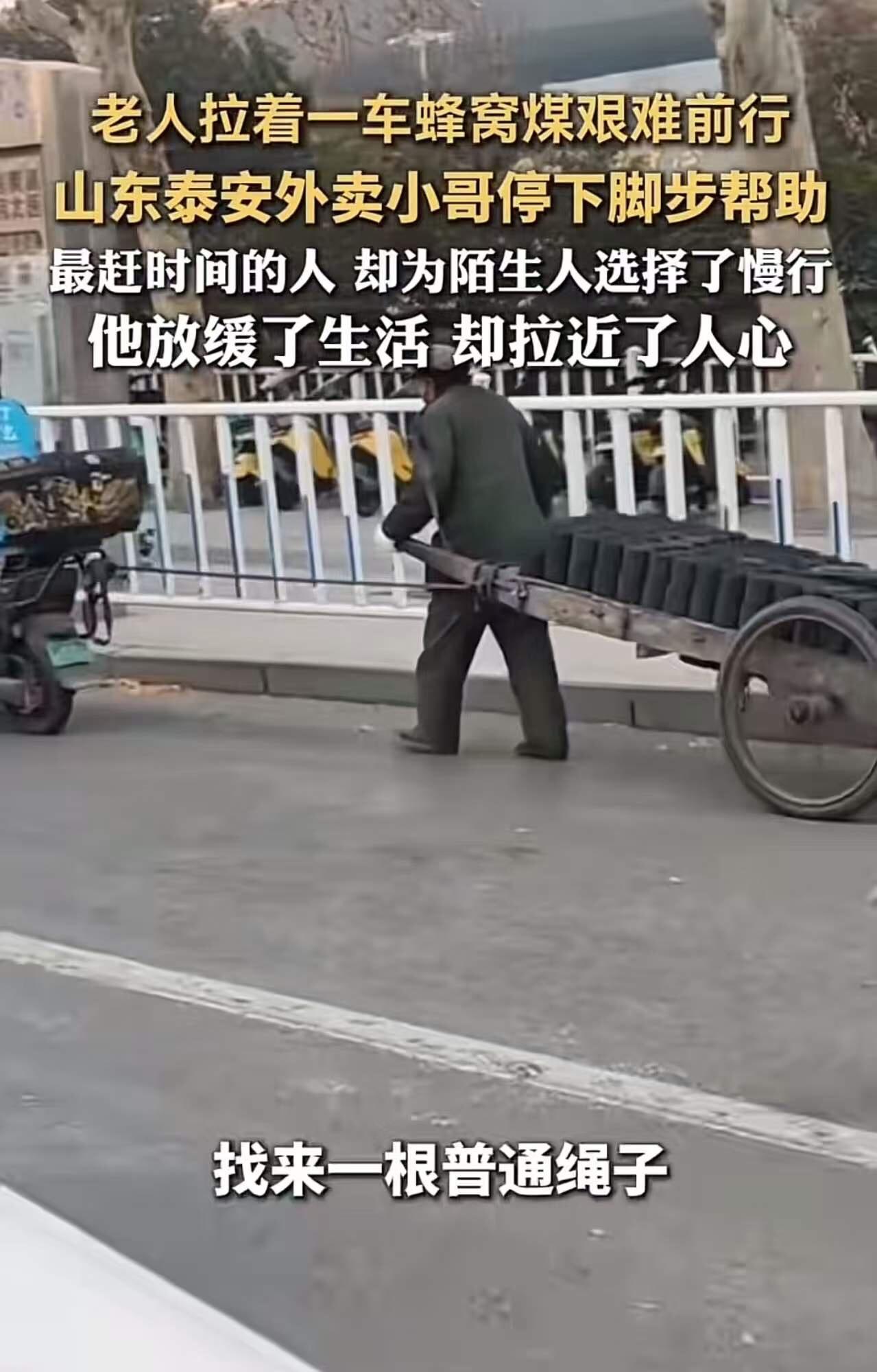 山东泰安,老人拉着一车蜂窝煤艰难前行,路上的人都选择无视,一个外卖小哥却选择停车帮助!网友:最赶时间的人,却为陌生人选择了慢行,他放缓了生活,却拉近了人心! 在这个快节奏、竞争激烈的社会里,我们似乎越来越习惯于“快”,习惯于忽略身边的温暖和善意。而就在山东泰安的一个普通街角,发生了一幕令人感动的画面,似乎在告诉我们:善良,从未过时。 那天,阳光正好,一位年迈的老人拉着一车蜂窝煤,艰难地在街上缓慢前行。路上的行人们似乎都变得麻木,或许是被生活的压力压得喘不过气,或许是习惯了快节奏的生活,没人愿意为他多停留片刻。大家都在加快脚步,仿佛那只是一场简单的搬运,没有谁会想到,背后藏着的是一份沉甸甸的责任和一份温暖。 就在这时,一位外卖小哥的出现,打破了这片冷漠。没有多余的犹豫,他立即停车,走过去帮老人托起那沉重的蜂窝煤。或许他也在赶时间,但他选择了“慢下来”,用实际行动温暖了这个普通的瞬间。那一刻,不仅仅是帮忙那么简单,更像是一场无声的传递:在这个世界上,善意其实很容易被点亮,只要你愿意“放慢脚步”。 网友们纷纷点赞:最赶时间的人,竟然为陌生人选择了慢行!他们说:“这才是真正的生活态度,不是忙得焦头烂额,而是在忙碌中找到温暖的出口。”有人感慨:“或许我们都需要这样一场‘慢生活’,让心变得更柔软一些,让人与人之间的距离更近一些。”还有人留言:“善意不需要理由,更不在于时间长短,只要愿意伸出手,就能点亮彼此的生命。” 这件事让我深思:在这个充满竞争和压力的社会,是否我们都在无形中变得冷漠?是否我们都需要一份“慢下来”的勇气?善良其实很简单,只是少了一点“计较”,多了一点“在意”。每一个愿意停下脚步的人,都是这个社会最美的风景。 也许,我们都应该学会像那位外卖小哥一样,用行动告诉自己:生活不只是奔跑,更是关怀和温暖的坚持。只要心中有善意,每一份善意都能成为点亮他人和自己的光。让我们在快节奏的生活中,也不忘那份初心——善良,是这个世界最美的风景线。 读完这故事,是不是也让你心头一震?在你未来的日子里,是否也能多一点耐心、多一点善意?别忘了,或许只是一个微笑,一次伸手,就能让这个世界变得更温暖。因为,善良,从未远离,只等待我们去拾起。老年拾荒者 独臂拾荒老人 拉板车老人 搬蜂窝煤 独臂拾荒的老人 外卖老人 送外卖老爷爷