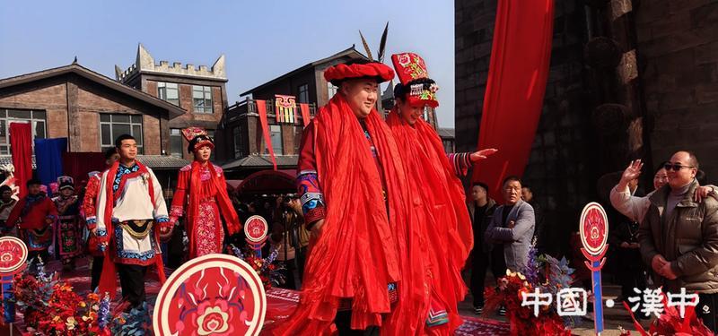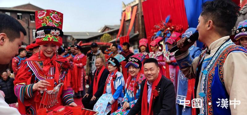 1月17日,宁强县林子轩、窦雅洁夫妇在县羌族文化博览园举行传统羌族婚礼,以庄重而喜庆的形式践行和弘扬羌族婚俗文化。
