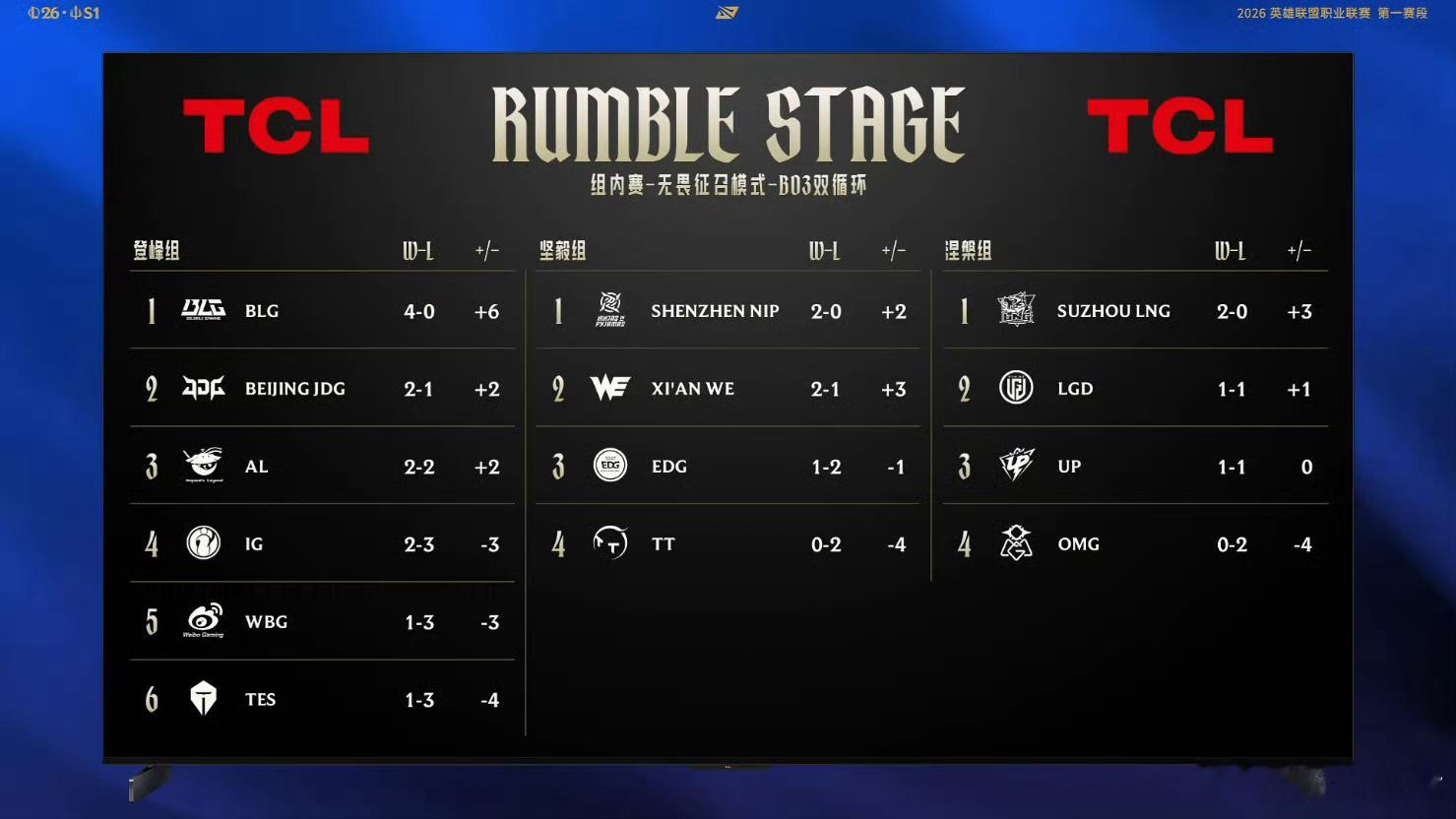 昨日赛果、积分情况以及今日赛程OMG 0-2 UPTT 0-2 EDGWE 1-2 NIPUP战胜OMGEDG战胜TTNIP战胜WE
