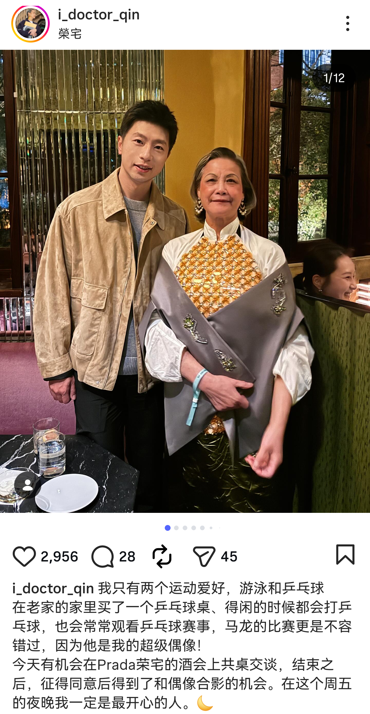 两次和阿姨合影都侧身低头了